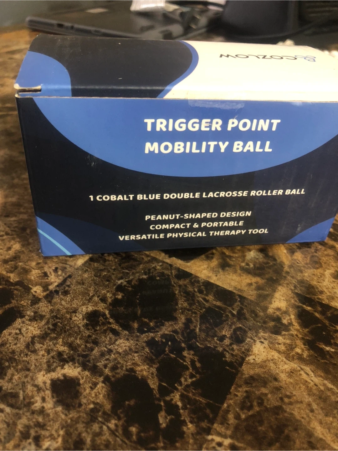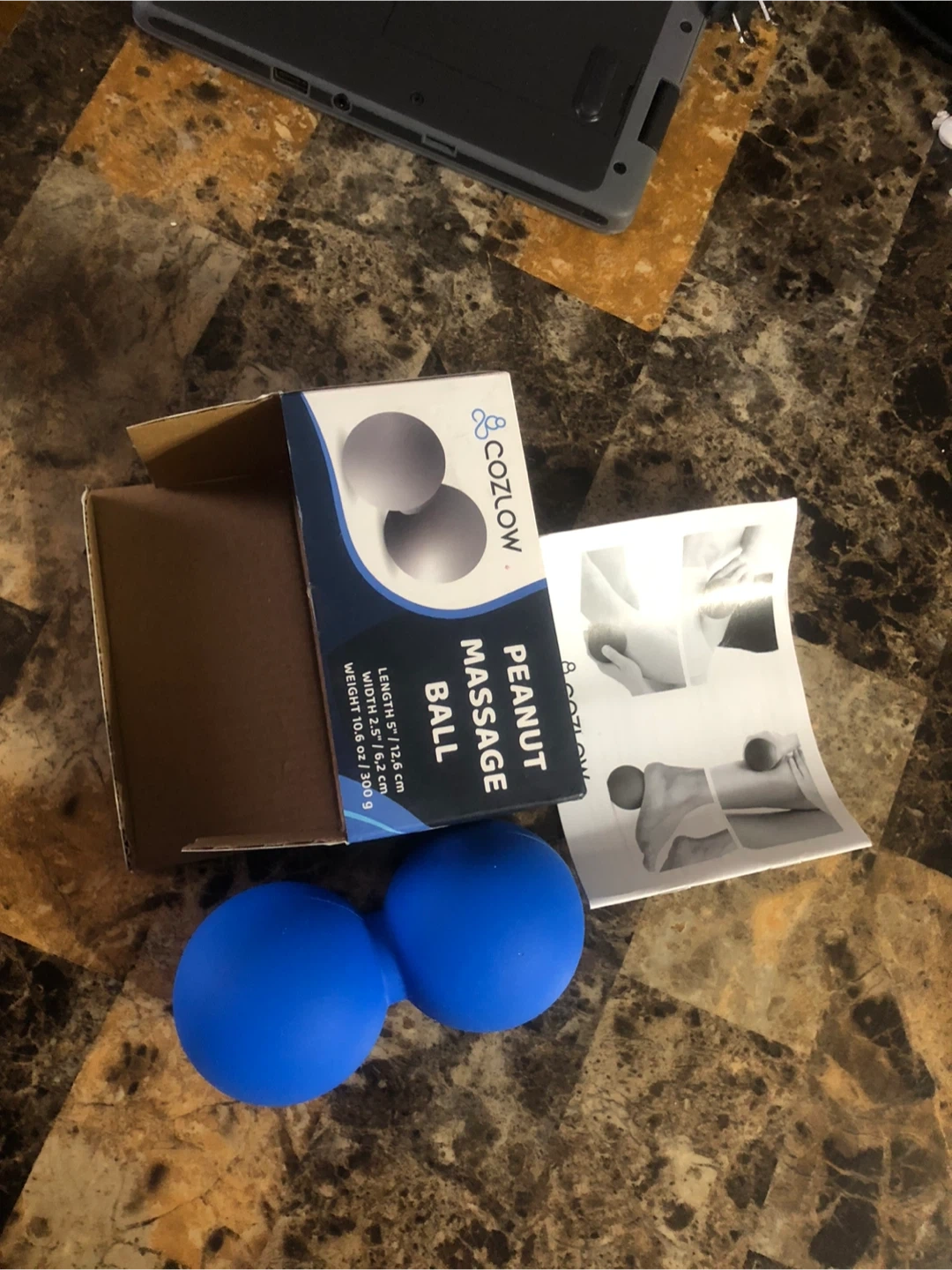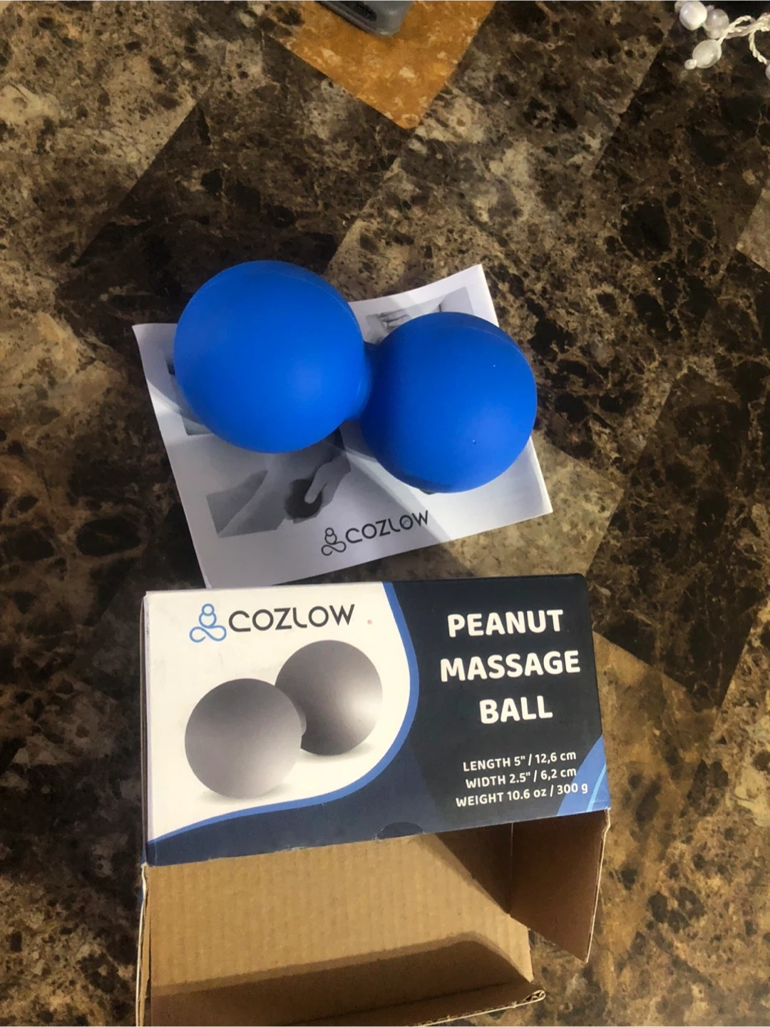 Selling a Cozlow peanut massage ball in cobalt blue! It's a trigger point mobility ball designed for physical therapy. The ball is compact and portable, great for on-the-go use. It's 5" long and 2.5" wide, and weighs 10.6 oz. The box is included!