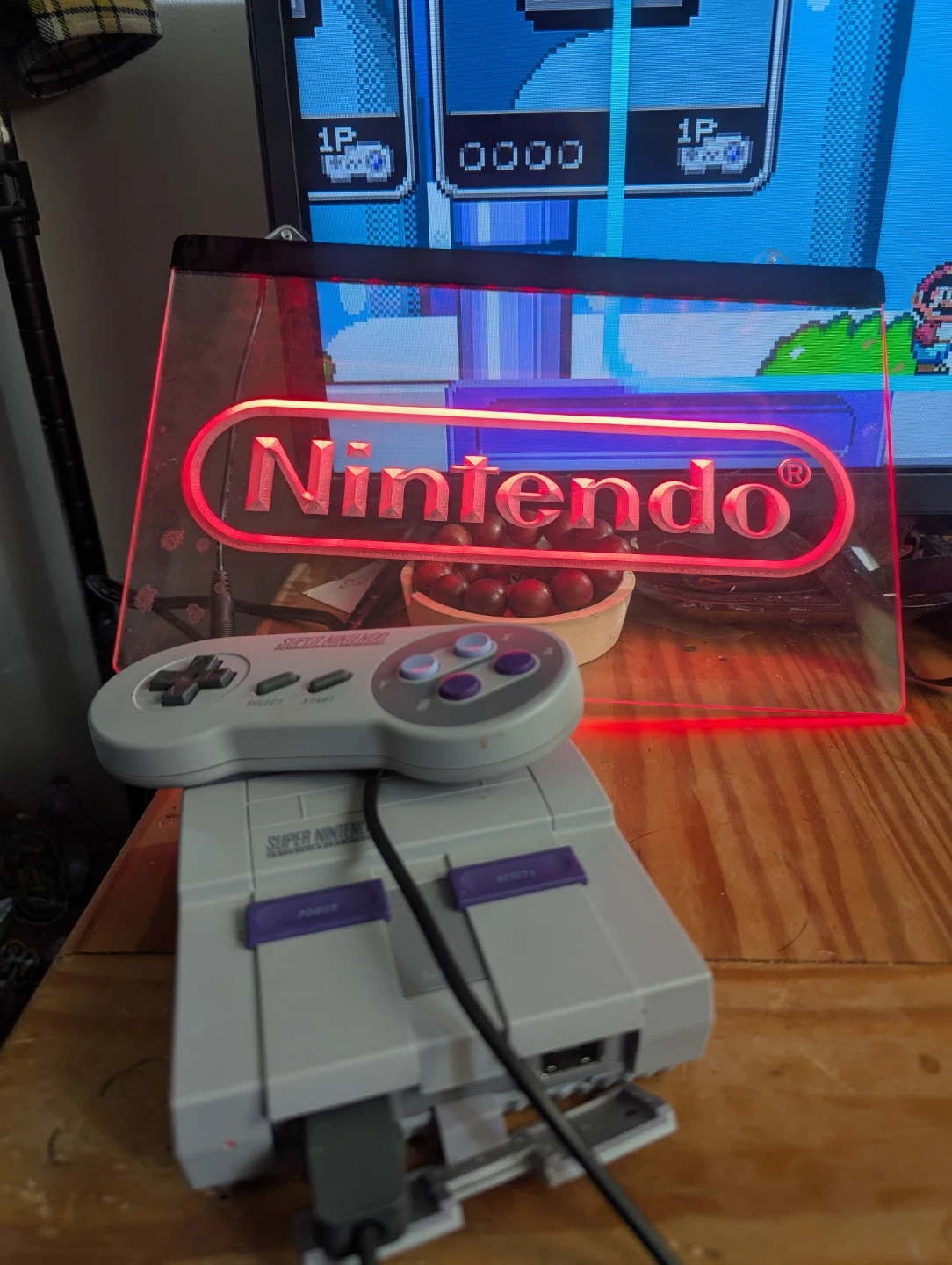 Super Nintendo classic (no box) all the plugs are included with two controllers. This one is not like original that only comes with 20 games,I added more games for more entertainment there are over 198 games one and two players games endless fun and it includes a led Nintendo sign free!!! All offers are welcome