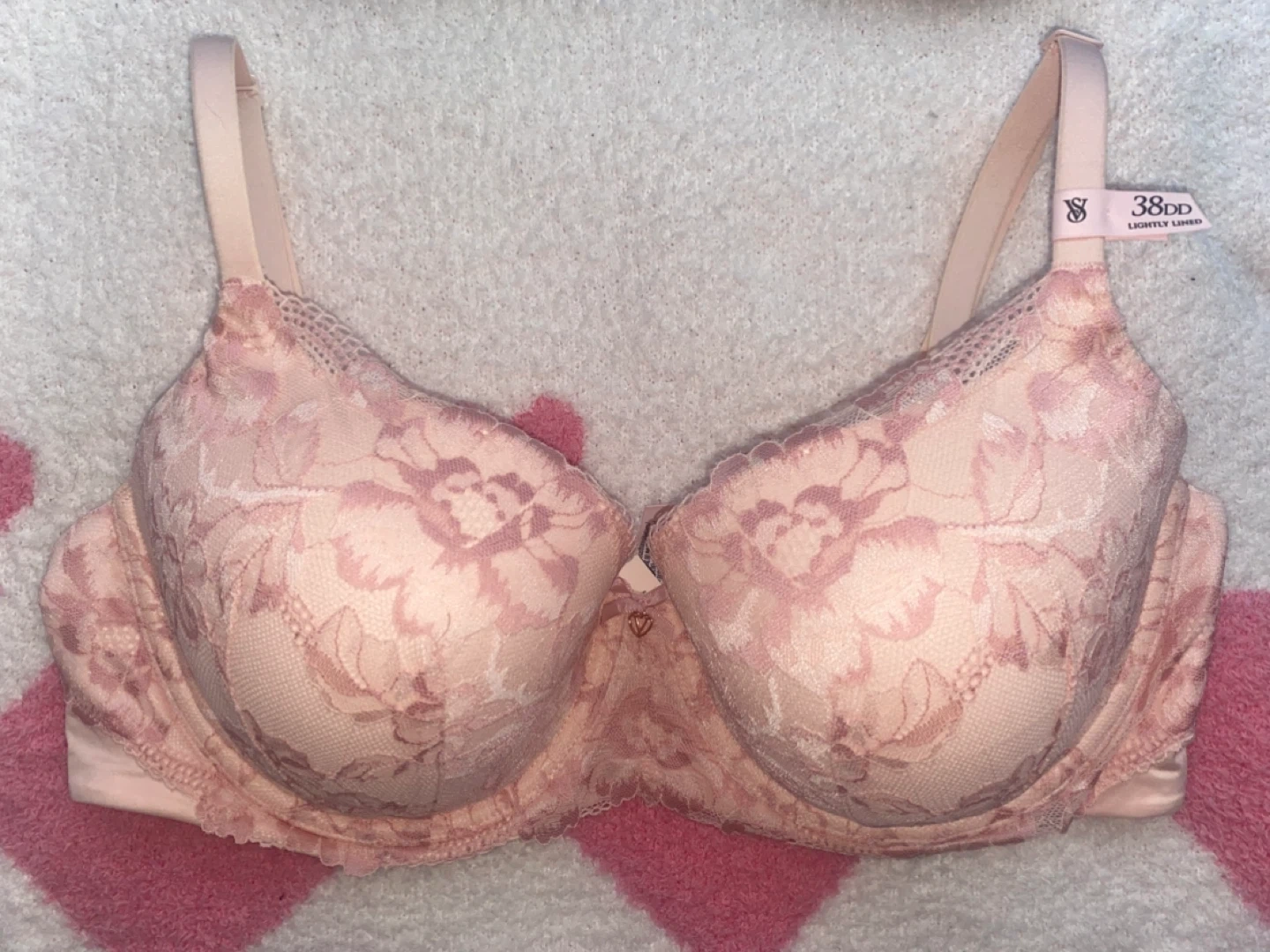 Victoria's Secret lightly lined bra in a soft pink lace. 60$