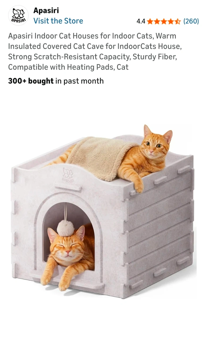 New Apasiri indoor cat house. It's an insulated covered cat cave for indoor cats. Strong scratch-resistant capacity and sturdy.