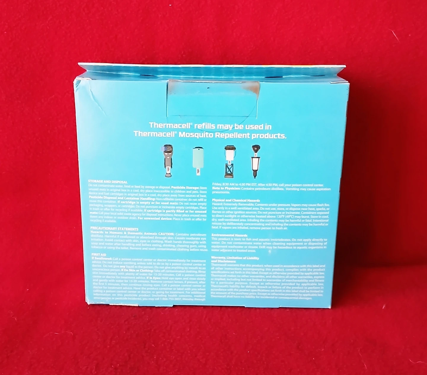This value pack includes 30 mosquito repellent mats, lasting 4 hours each, and 10 fuel cartridges, lasting 12 hours each.