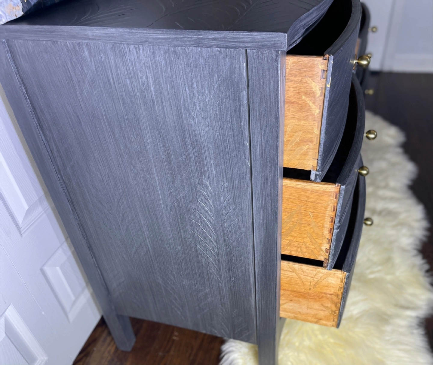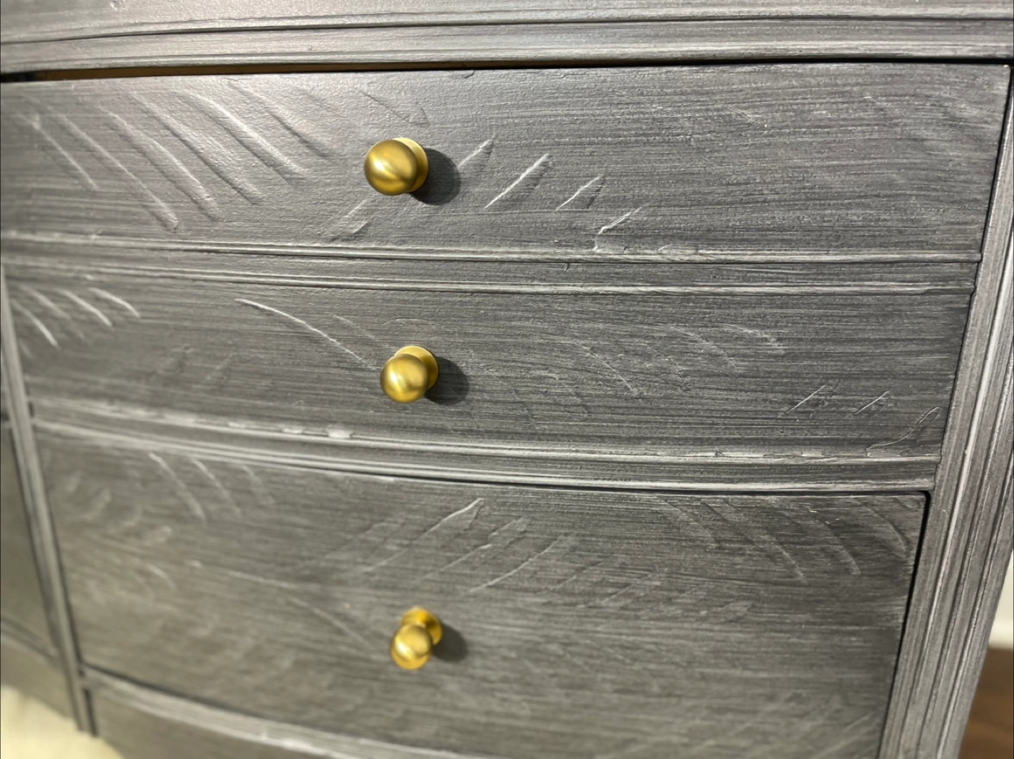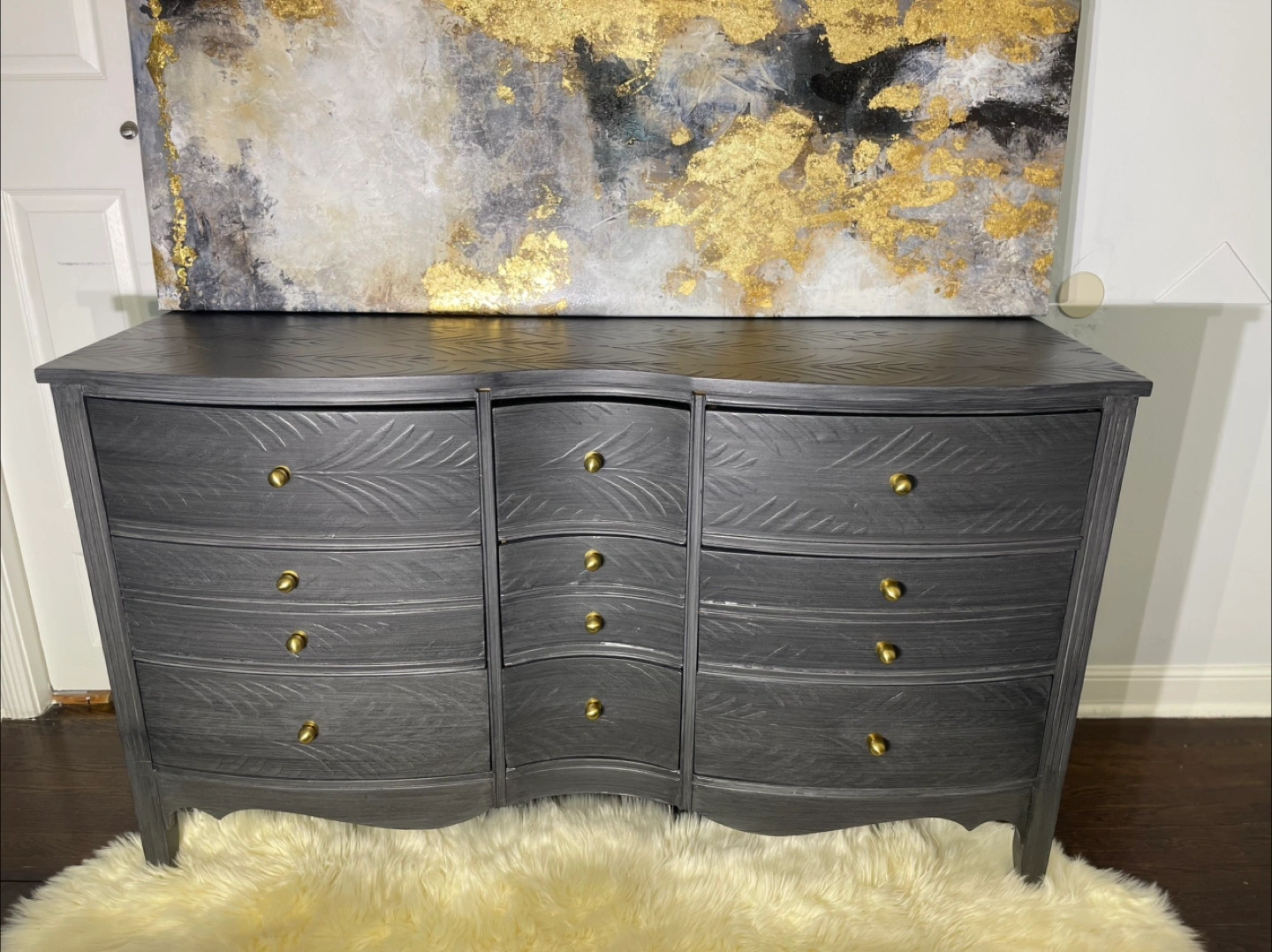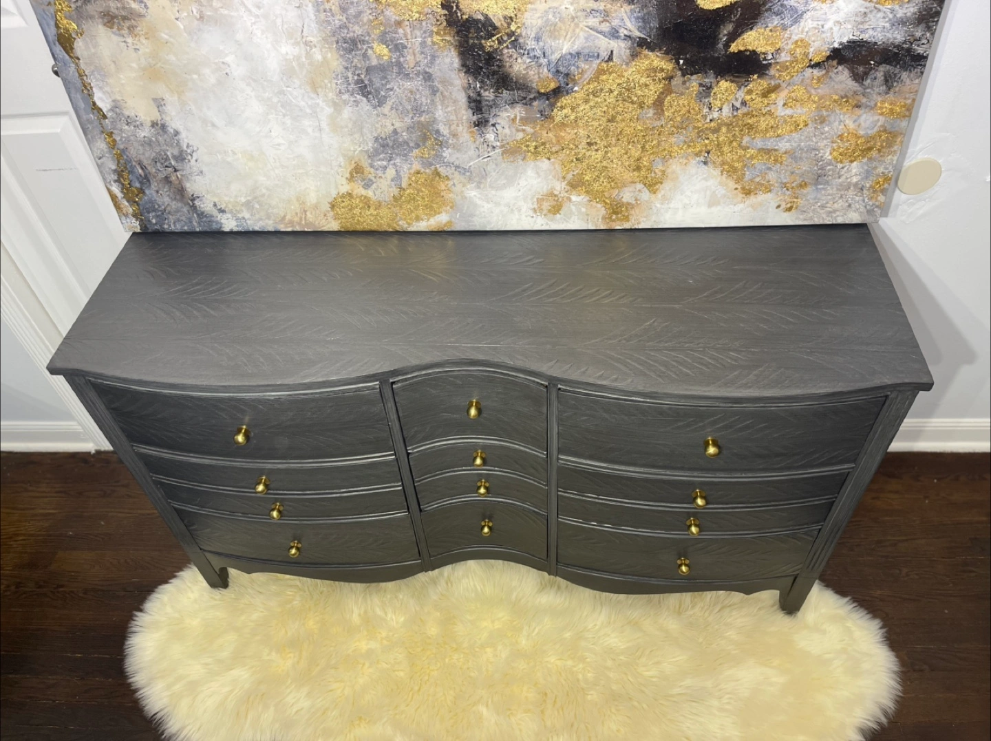 Beautiful Dixie dresser redone in modern gray brushed finish. Featuring 2 layers of primer, 2 layers of paint, and 3 layers of polycrylic for extra protection and durability.