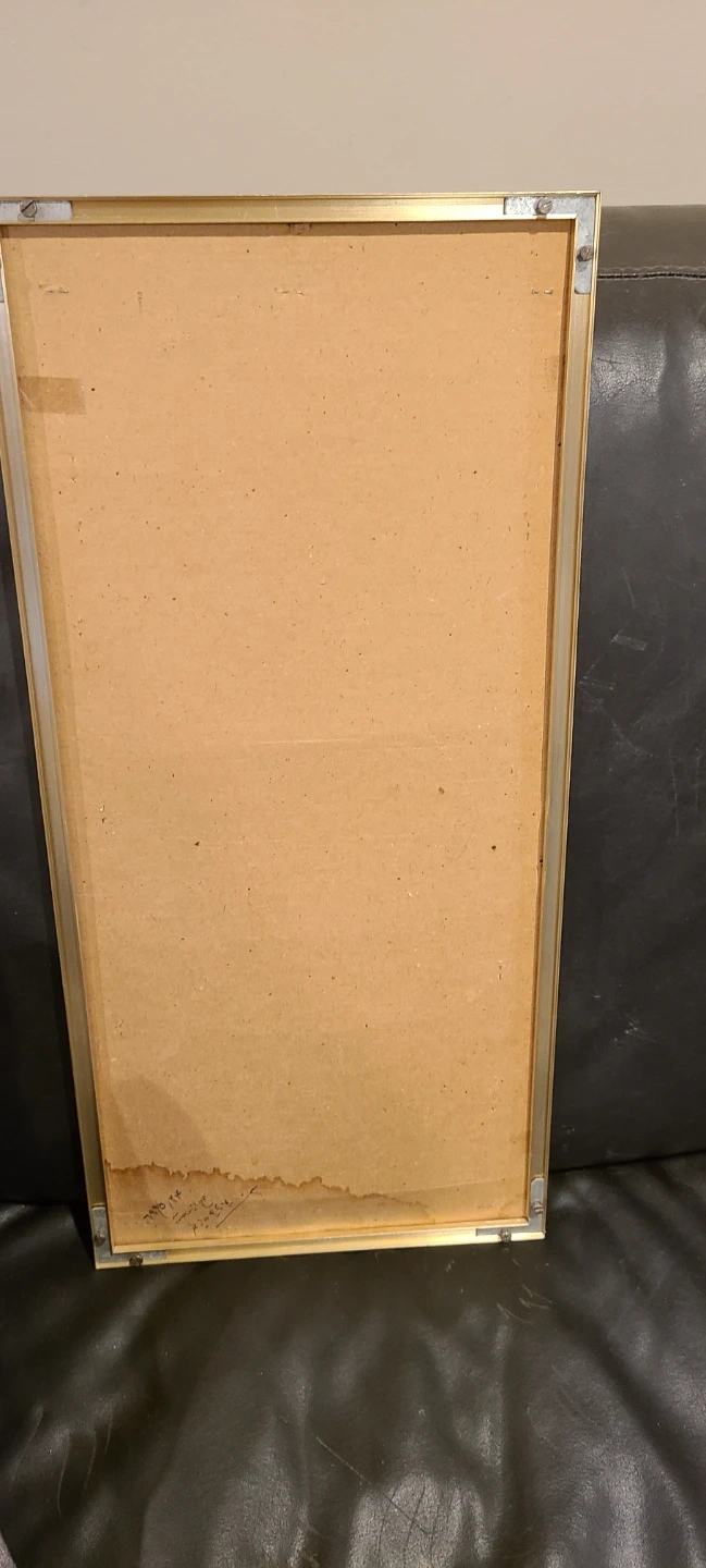 Handmade Framed needlepoint artwork featuring a floral design with roses. The piece is framed in a gold-toned metal frame. It's a lovely decorative item for a wall.