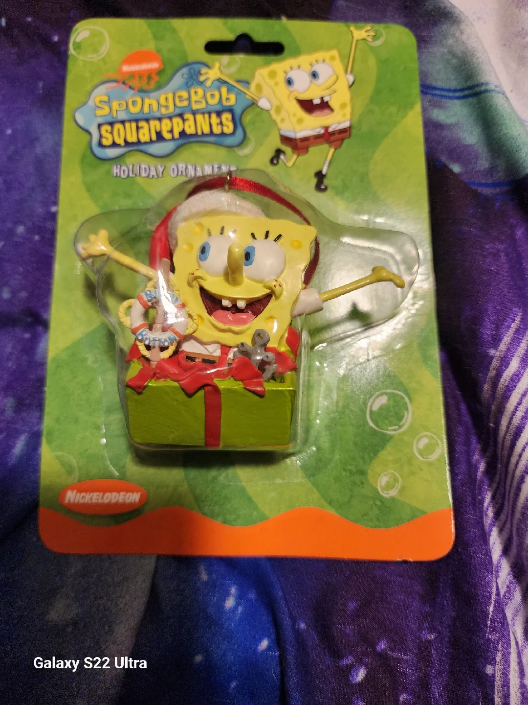 I'm selling a brand new SpongeBob SquarePants Holiday Ornament! This cute ornament features SpongeBob in a festive holiday theme. It's perfect for decorating your Christmas tree or adding a touch of fun to any space. This is a decoration, not a child's toy!