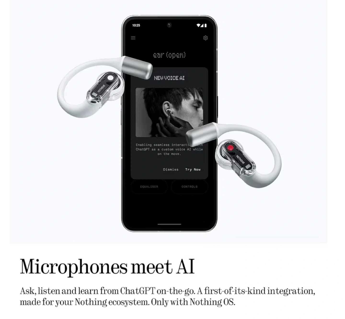 Ear(Open) Lightweight Open Ear Headphones with Adjustable Earhooks, Multipoint Connection Bluetooth Earbuds with Clear Voice Technology for AI Calls, IP54, Fast Charging, ChatGPT Supported