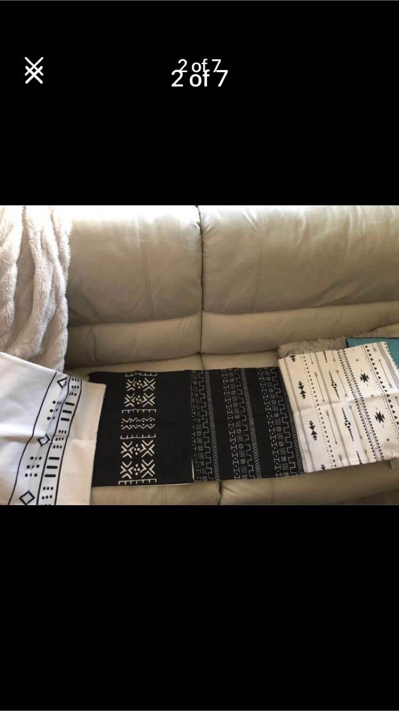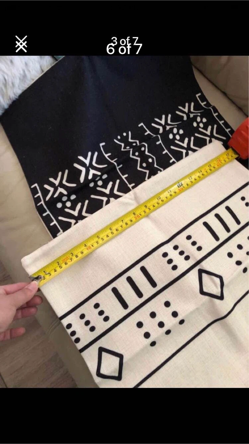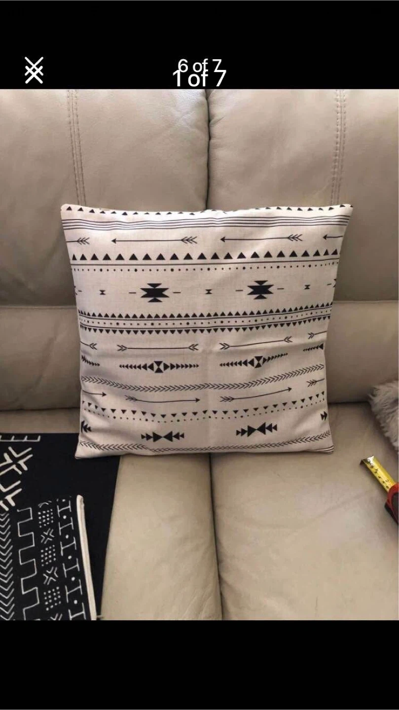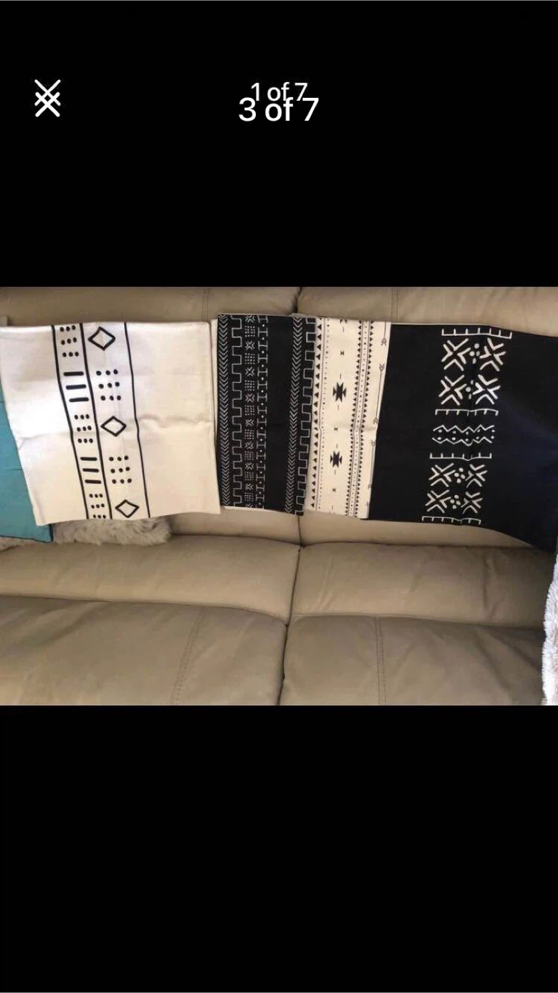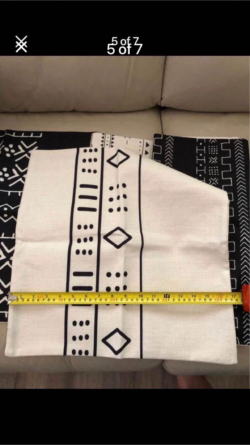 Set of 4 throw pillow covers with black and white boho patterns. Two covers measure approximately 17X17 inches. These covers are made from a durable fabric, perfect for adding a stylish touch to your living space.