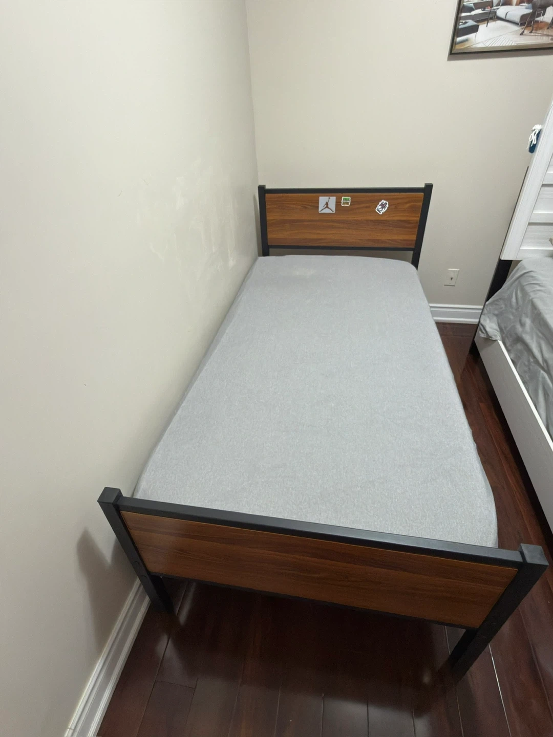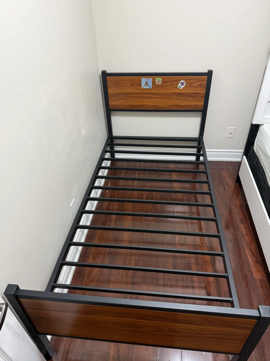Twin Bed Frame with Wood Accents