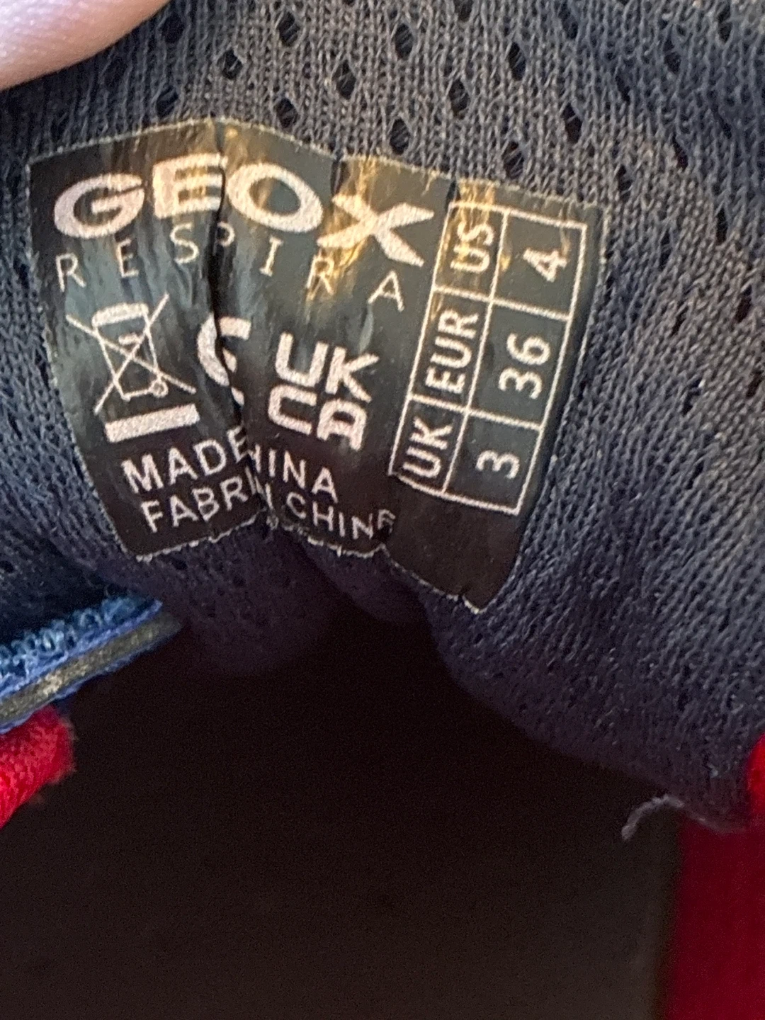 Kids' Geox sneakers featuring a Spider-Man design. They've got red and blue colours with a hook-and-loop strap and laces. These shoes light up when they're walked in!