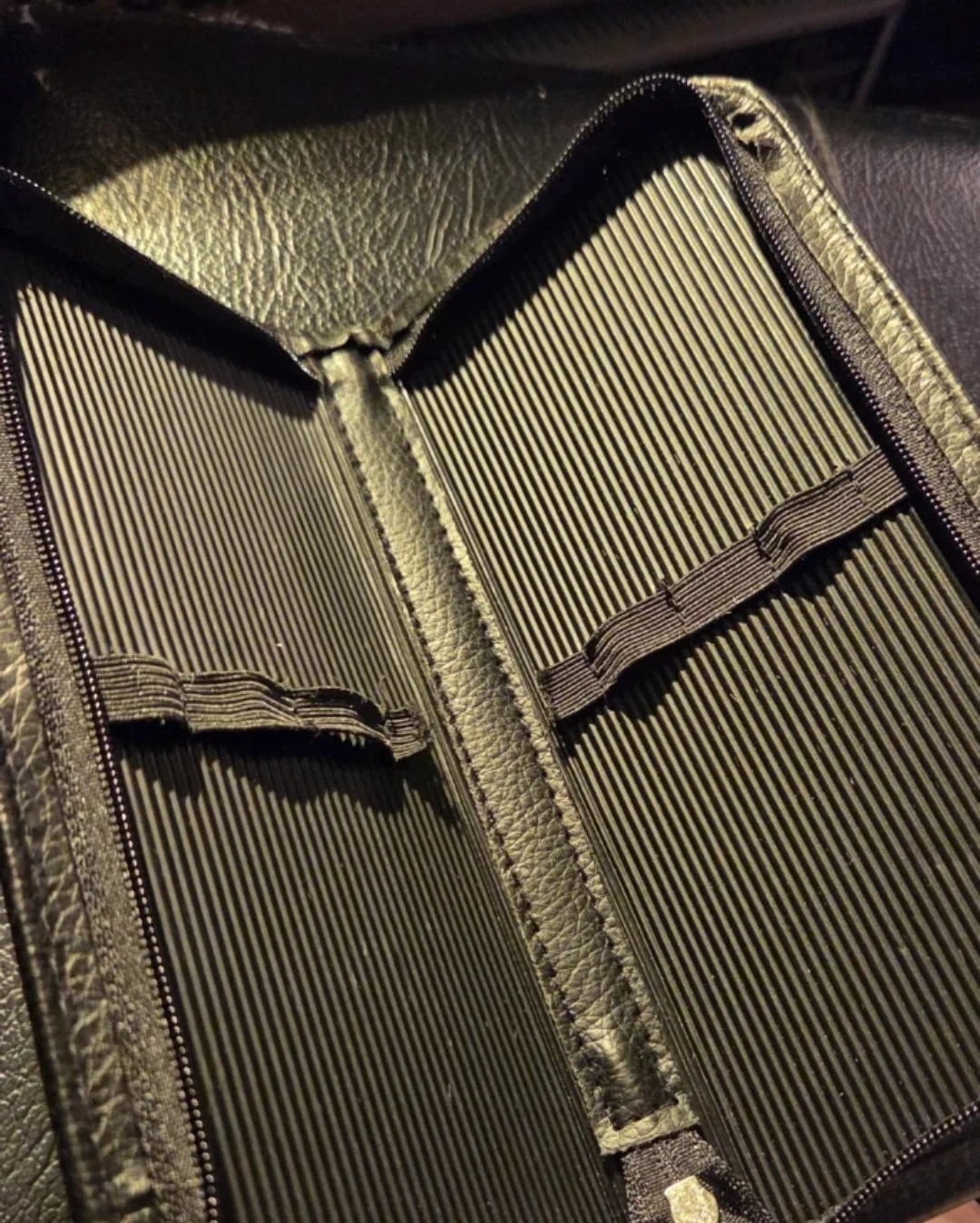 Black faux leather zippered case
