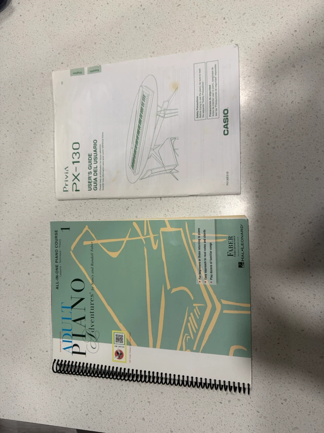 Comes with the Faber All-In-One Adult Piano Adventures course book and owners manual.