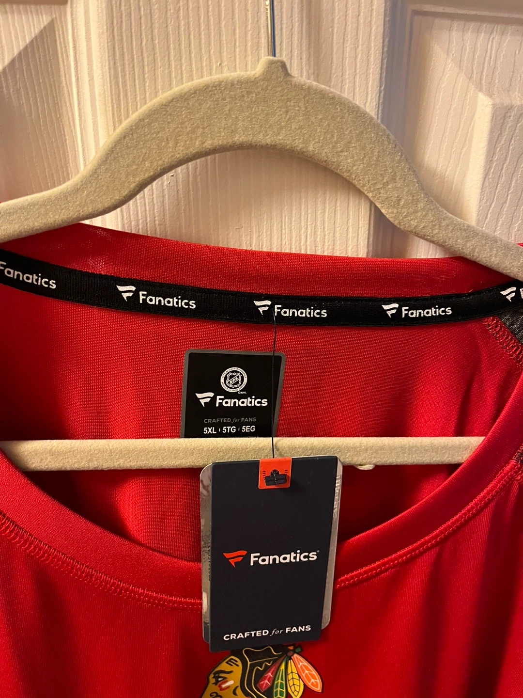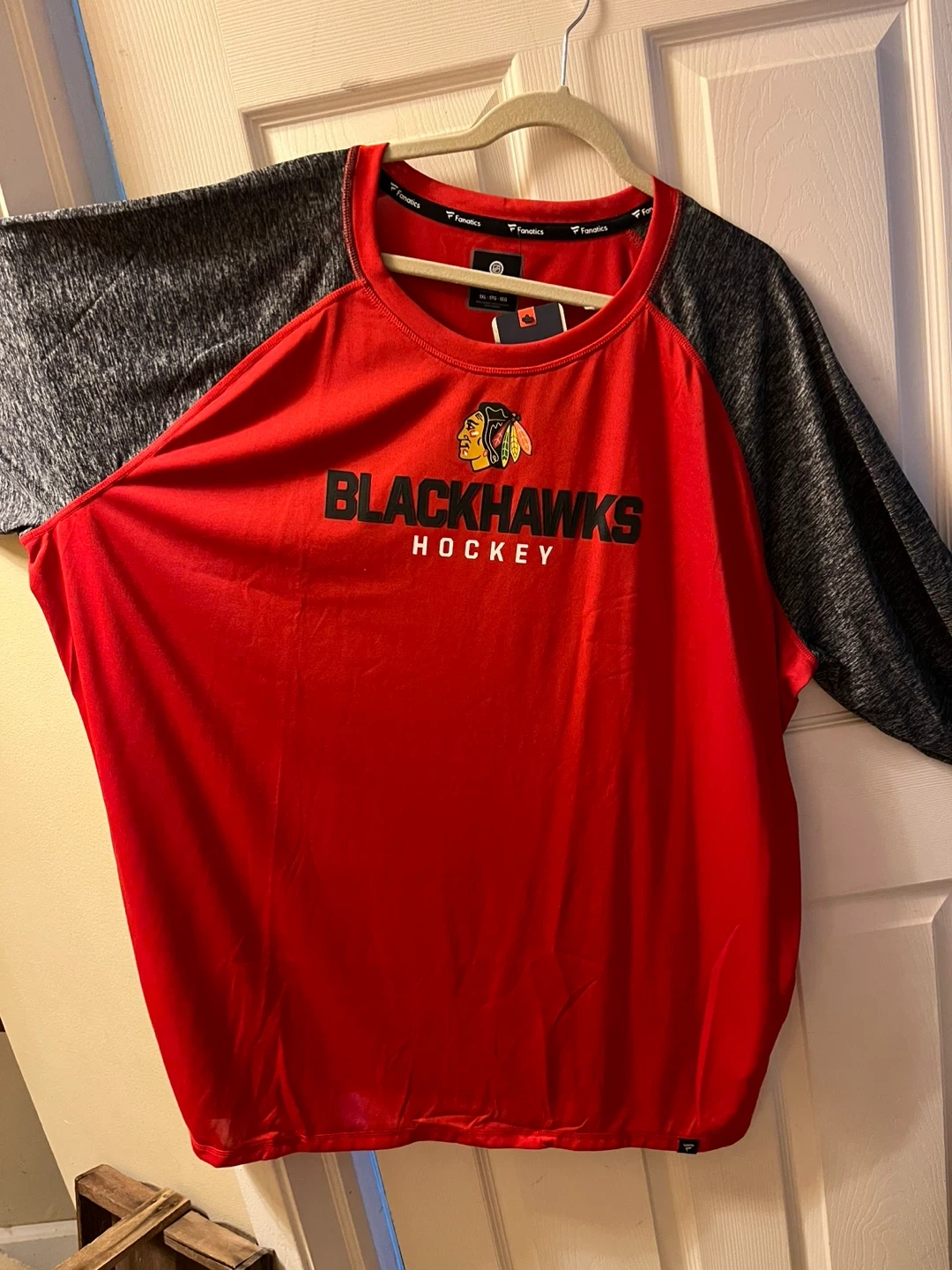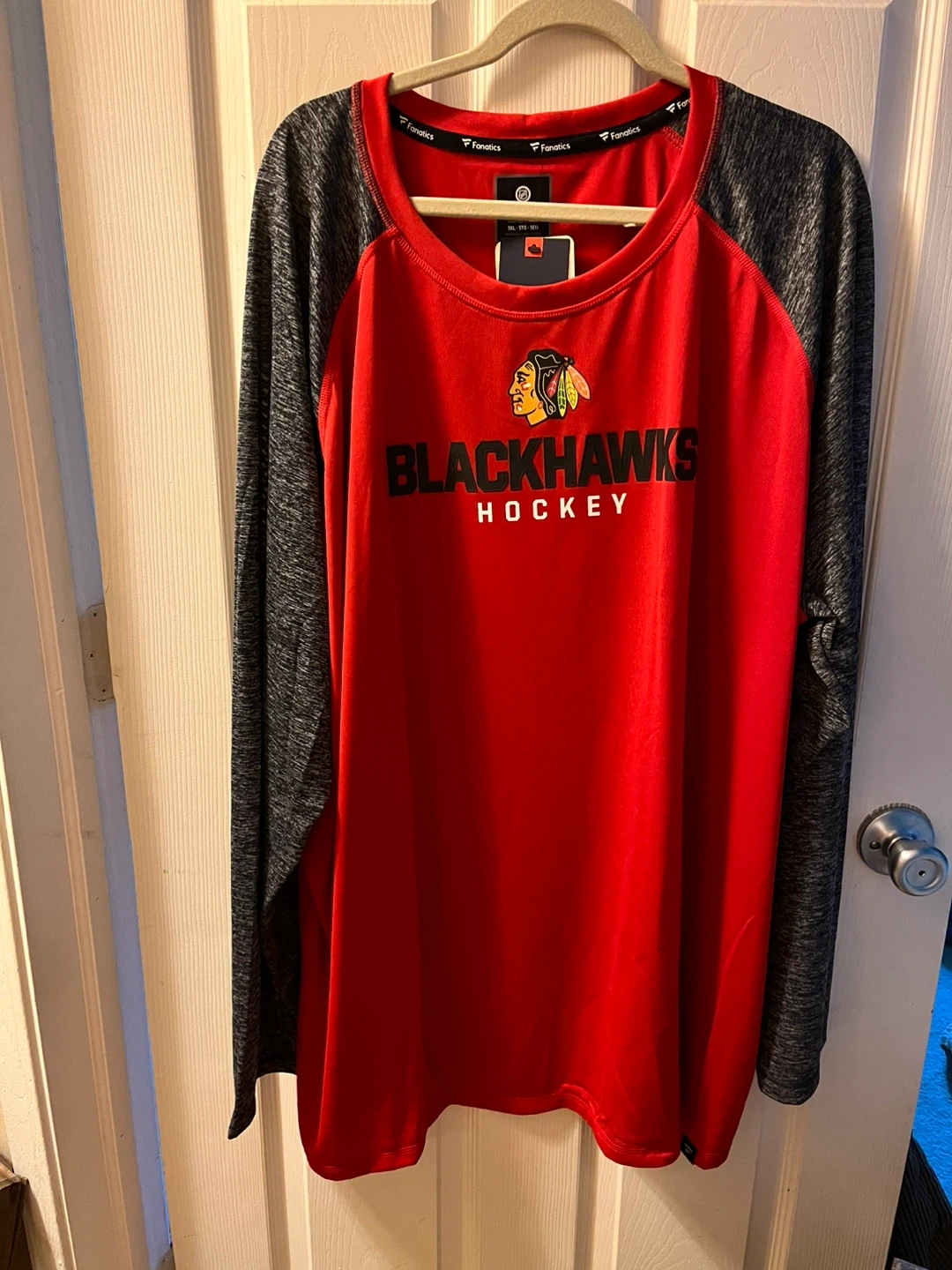 Fanatics long sleeve t-shirt with Chicago Blackhawks Hockey graphic. Crafted for fans. Size 5XL.