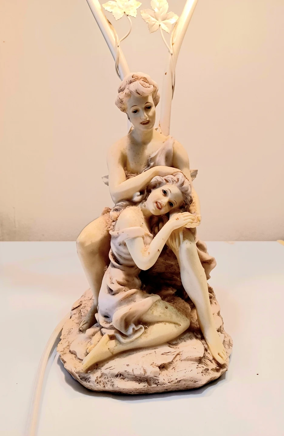 Vtg Art Nouveau Style Lovers Table Lamp
