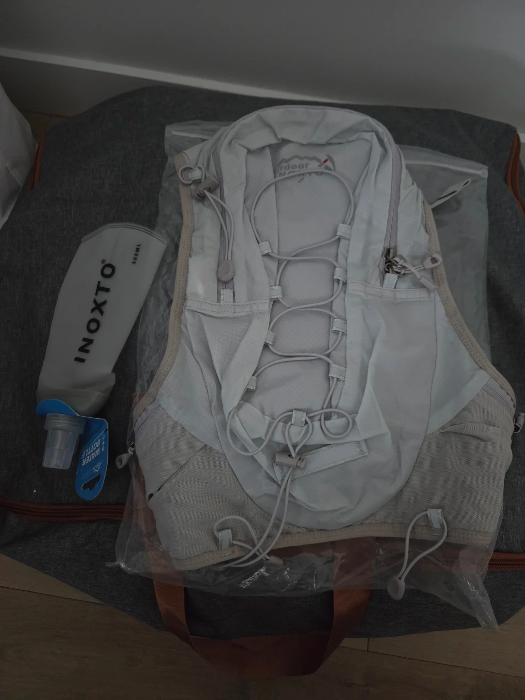 Lightweight outdoor vest with adjustable straps. Includes a 500ml INOXTO water bottle. Perfect for running or hiking!