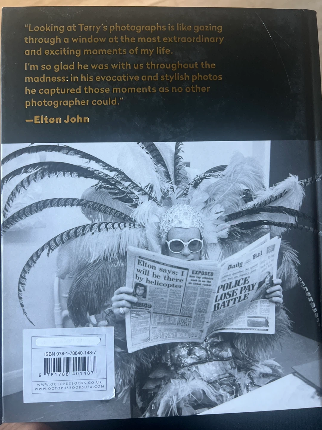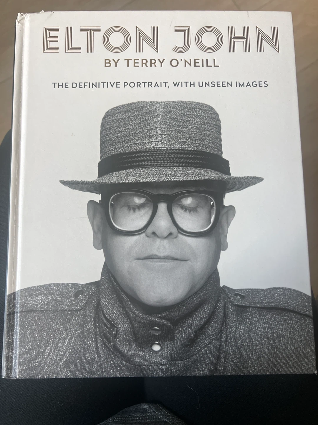 This hardcover book features "The Definitive Portrait" of Elton John, captured by Terry O'Neill. It includes unseen images from his extraordinary life. The book measures approximately 10.5 x 8.5 inches. CASH ONLY!