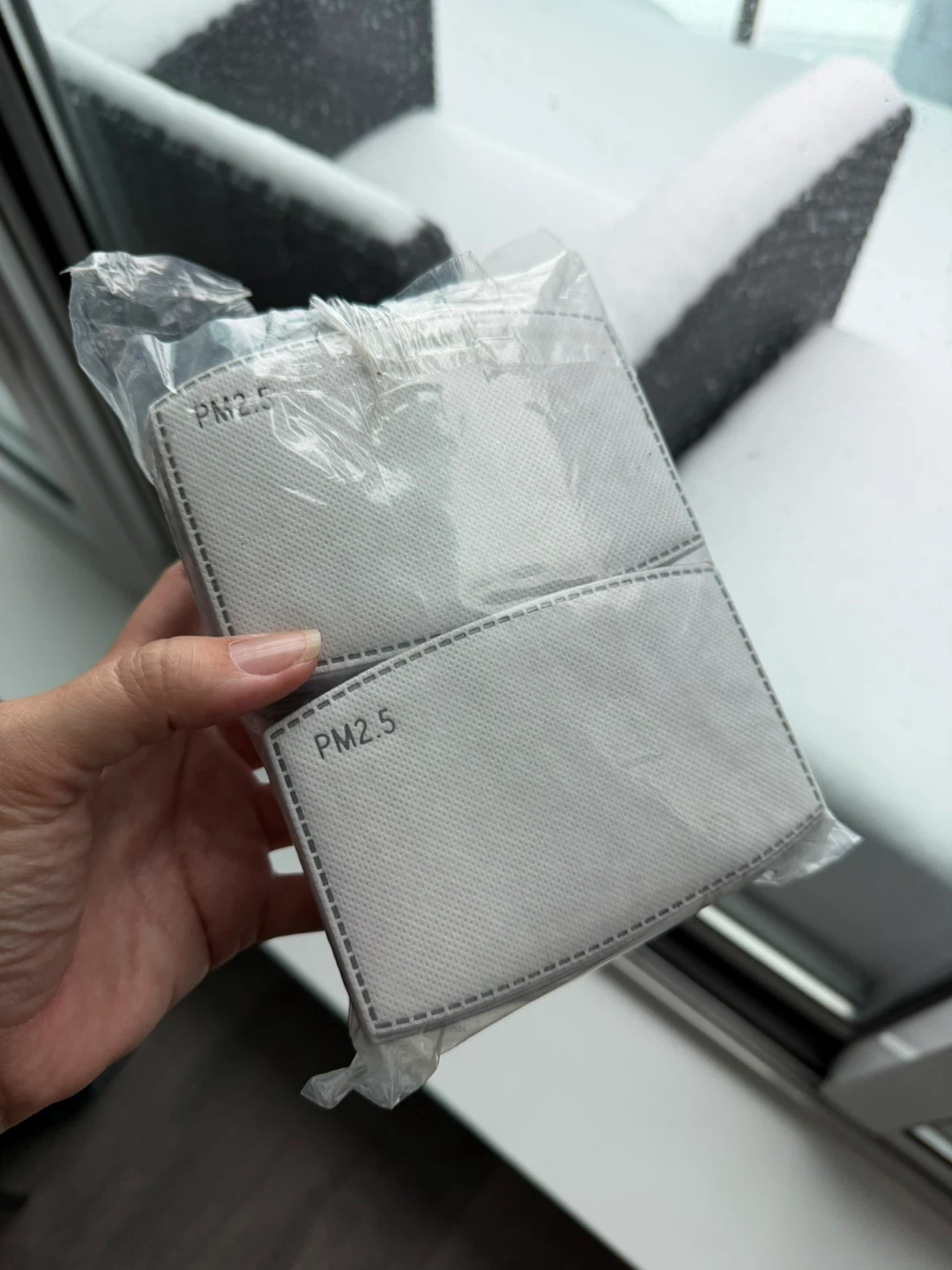 PM2.5 filter inserts for masks. These are replacement filters designed to fit into compatible masks. Material is non-woven fabric.
