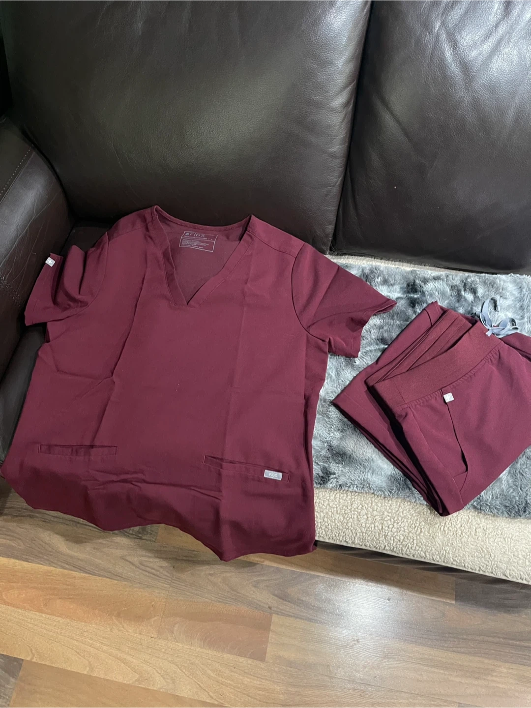 Selling a FIGS scrub set in a lovely wine red colour! It's in great condition and ready for a new professional to wear. Perfect for healthcare workers or students. The material is super comfy and easy to care for