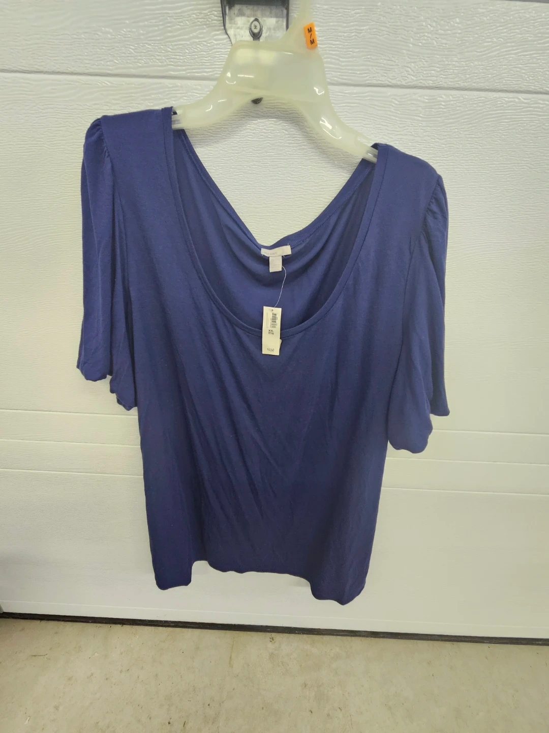 This is a navy blue short sleeve top from Old Navy. It's a size XXL. It's made from a soft, comfortable material. This top would be great for casual everyday wear!
