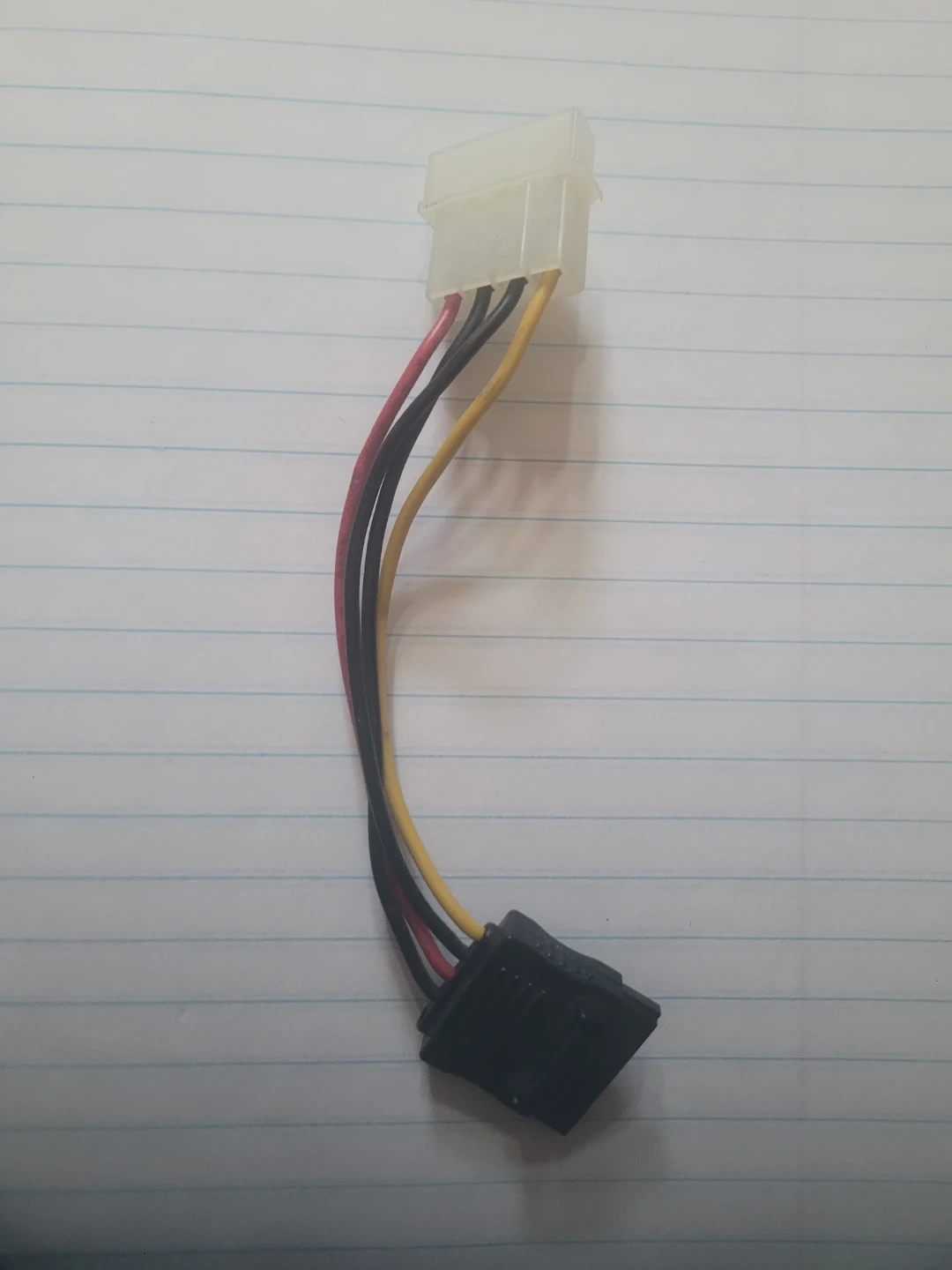 This cable converts a 4-pin Molex power connector to a SATA power connector. It's useful for connecting SATA drives when your power supply has limited SATA ports. 4-pin Molex input, SATA output.
