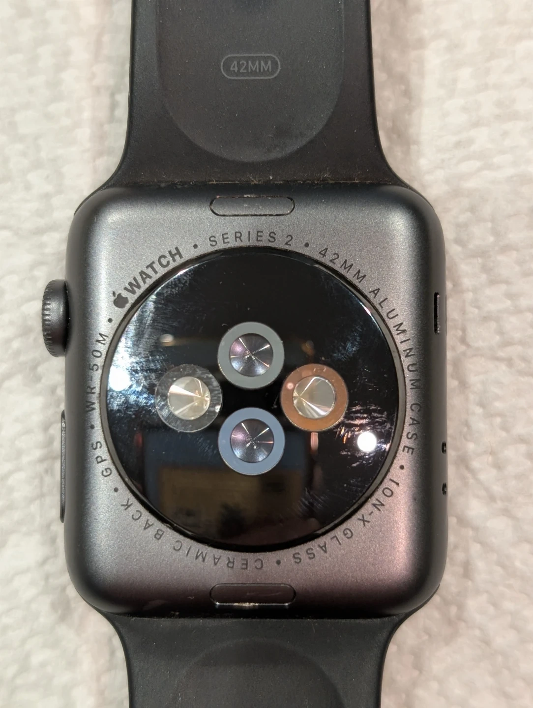 Apple Watch Series 2, 42mm size. GPS model with an aluminum case. Water resistant 50m. Ceramic back. Watch is in excellent condition no charger.