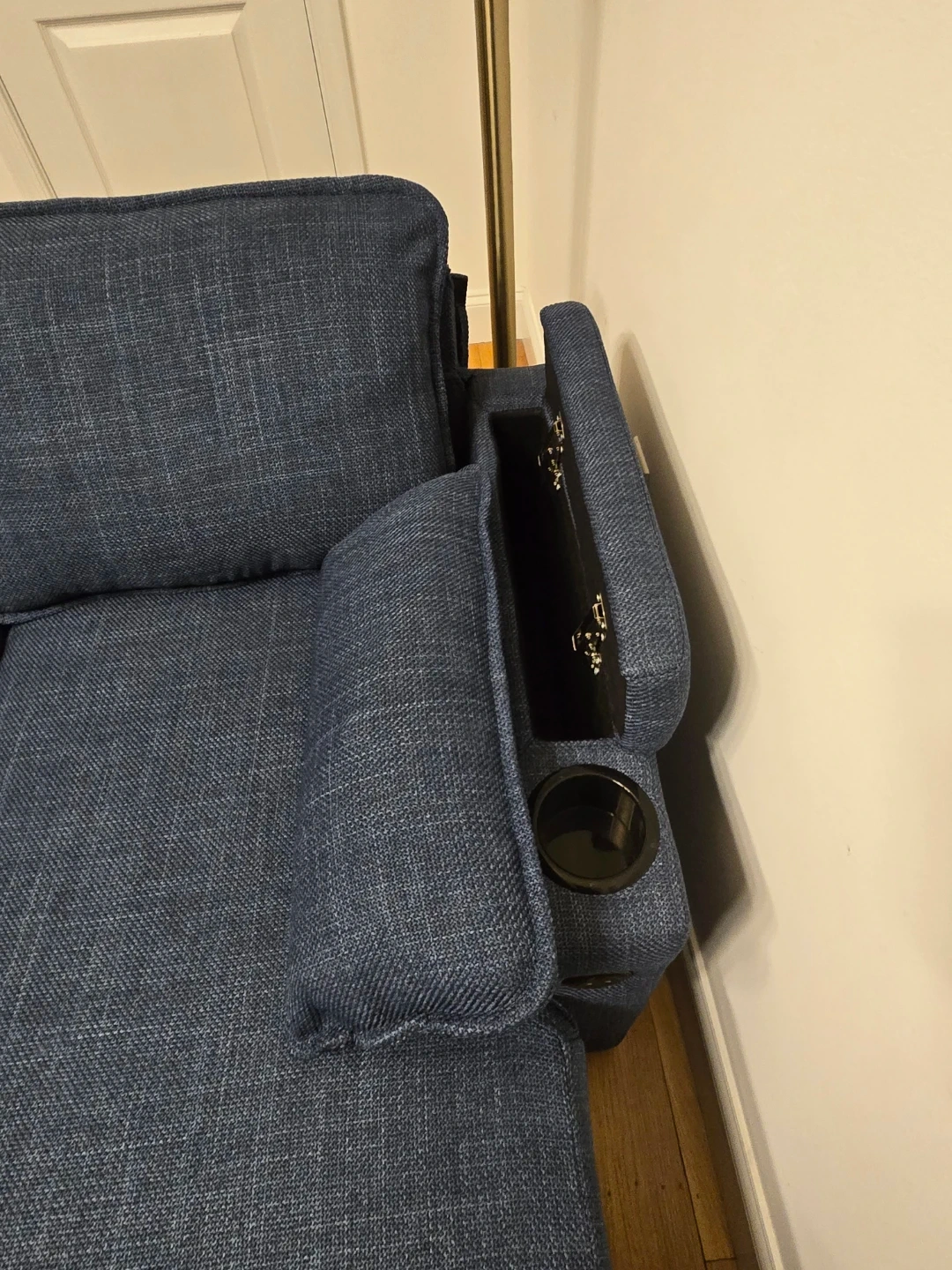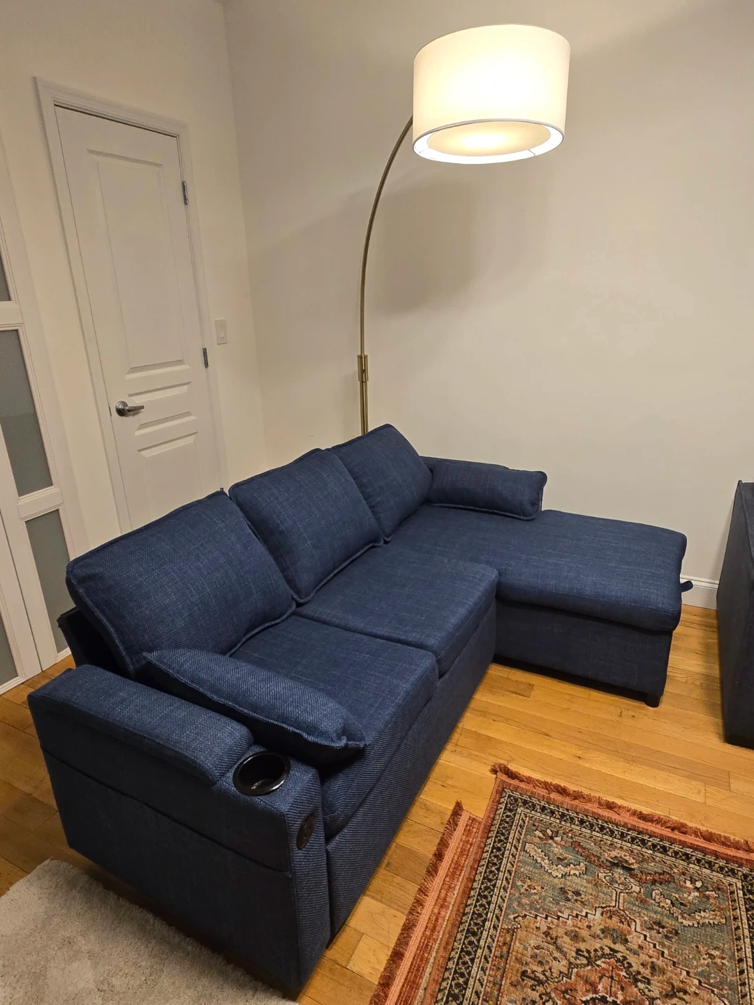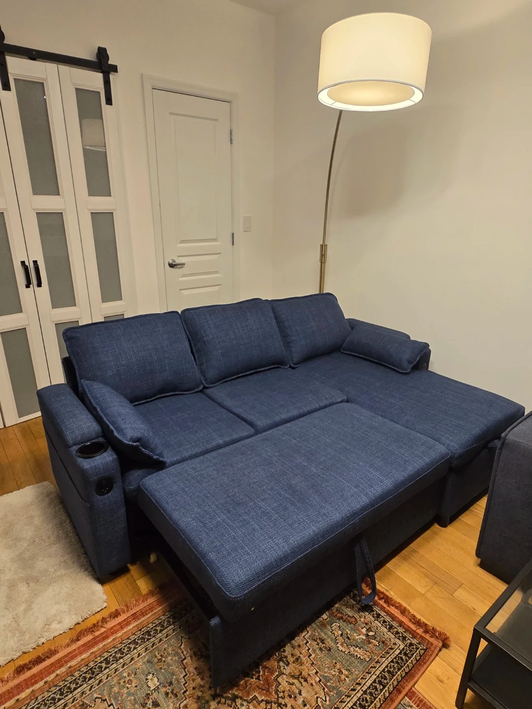 Blue Sectional Sofa Bed with Storage and Cup Holders