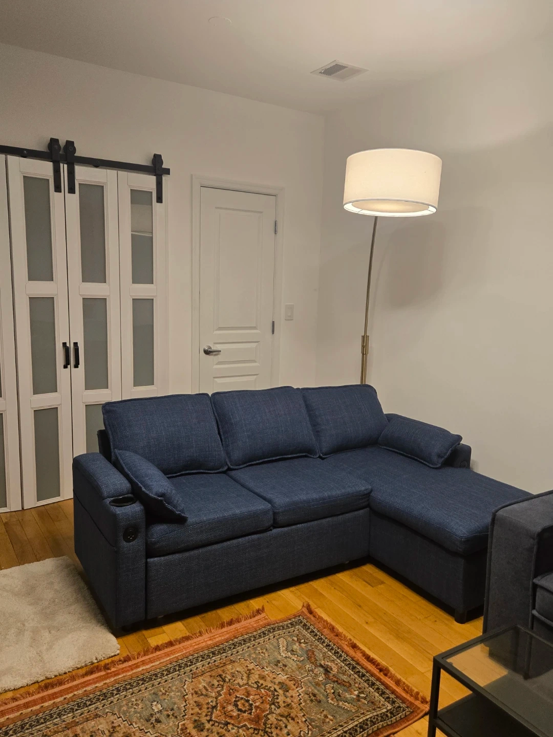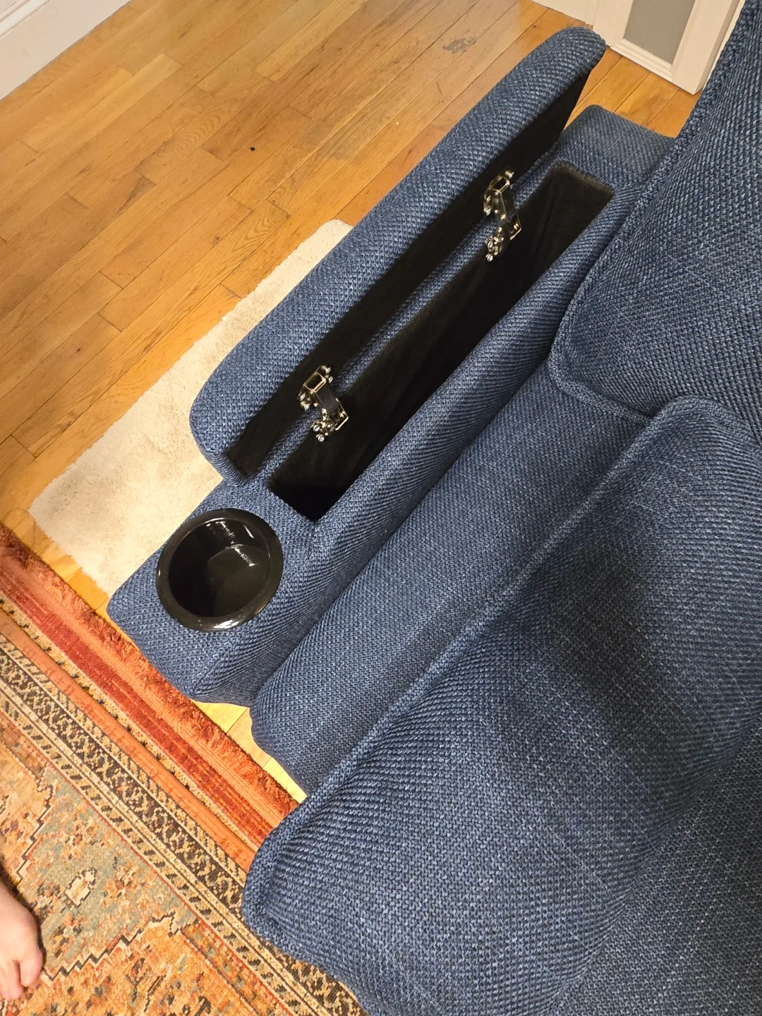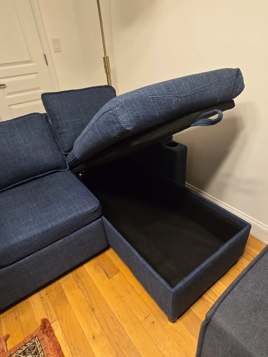 Blue Sectional Sofa Bed with Storage and Cup Holders