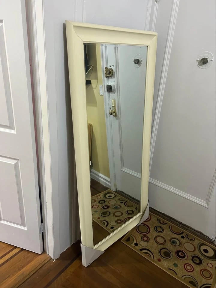 Naomi Home Framed Floor Length Mirror. Standing large rectangle mirror, full body mirror. Perfect for the bedroom. Dimensions: 65" L x 31" W. Let me know if you're interested!
