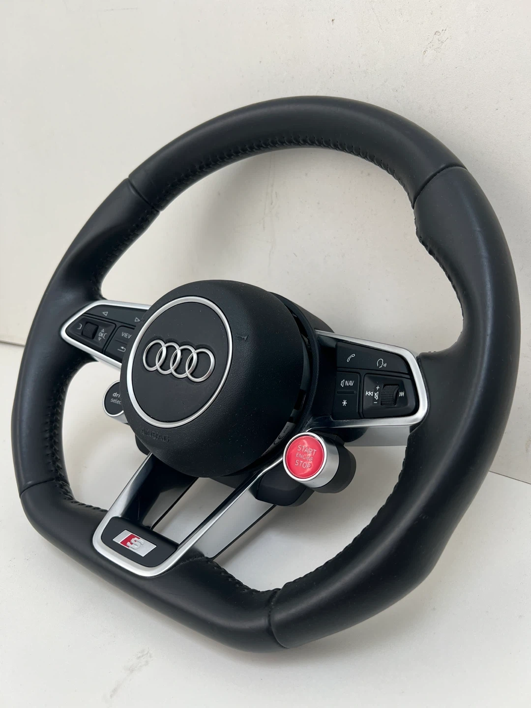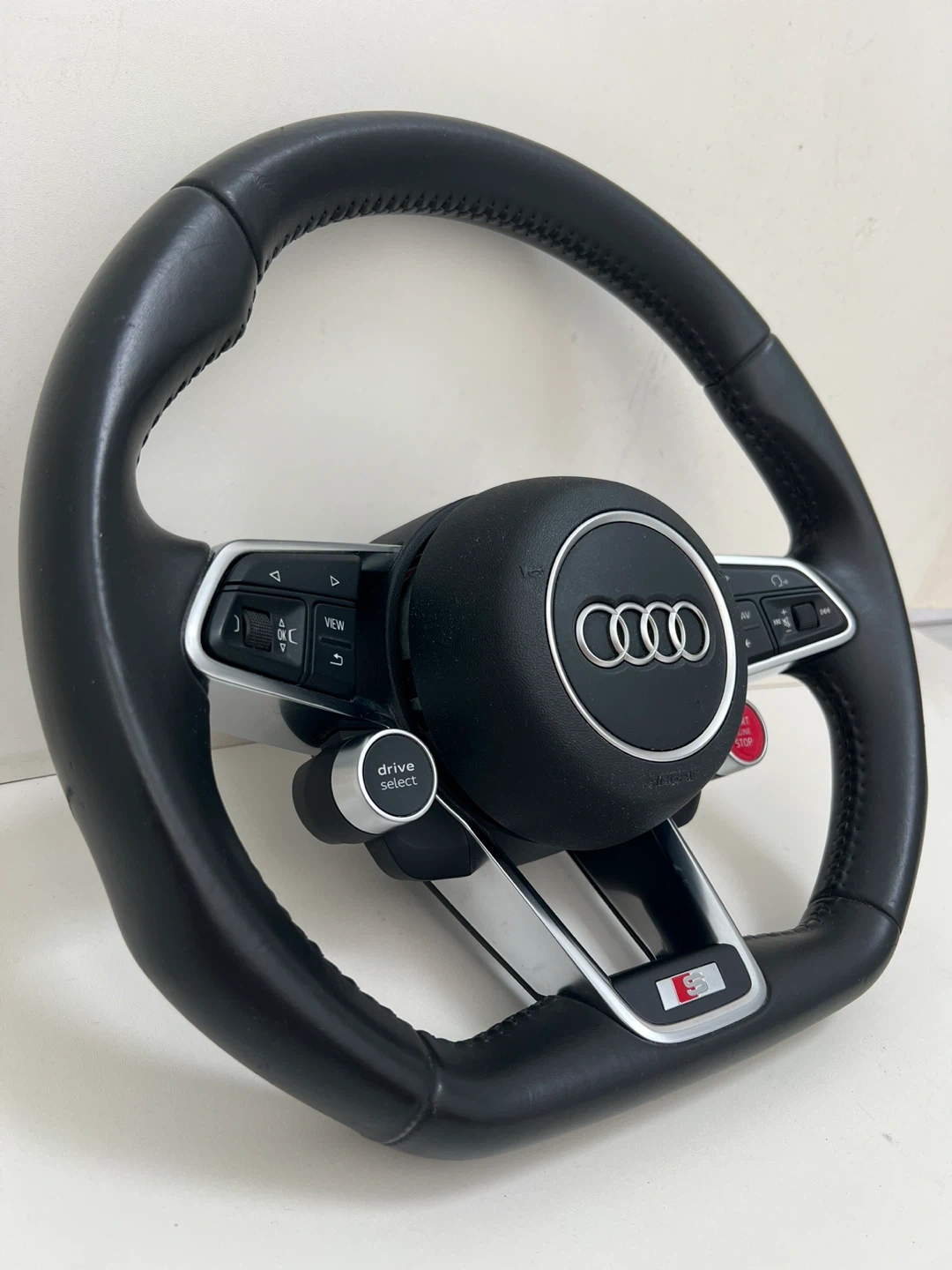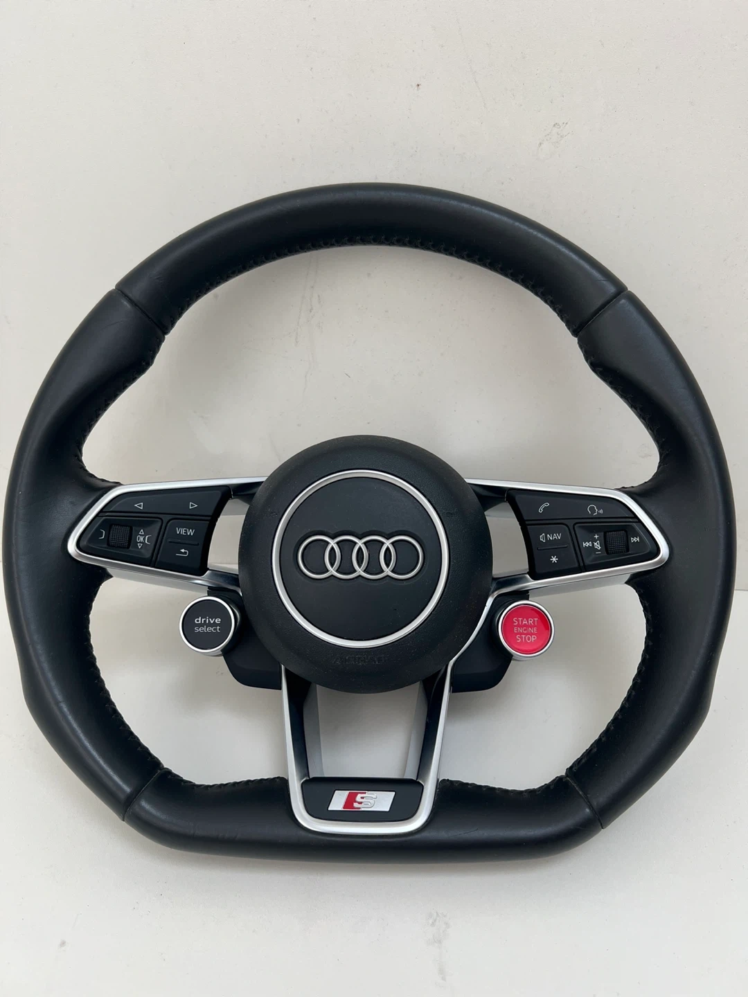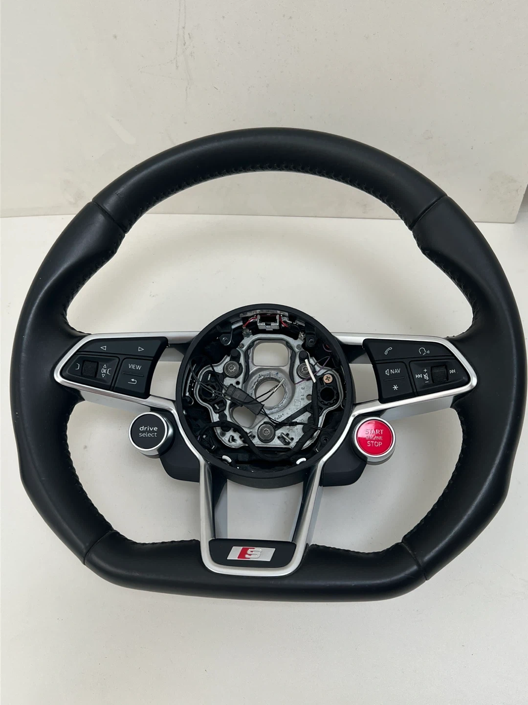 Up for sale is a used but 100% working condition OEM Audi R8 TT Black Leather Steering Wheel Assembly 2017 - 2023 start engine stop, drive select Mint condition, great for modifying your Audi A3, S3, A4, S4, A5, S5, A6, S6, A7, S7, A8, S8, TT, R8. Minor scratches from cleaning, wiping. There are many R8 retrofit videos on youtube, please do your own research. A working Airbag is included, this item needs to be shipped via ground ONLY due to shipping regulation. Accepted payment is cash, zelle, venmo, etc. Thanks for your time!