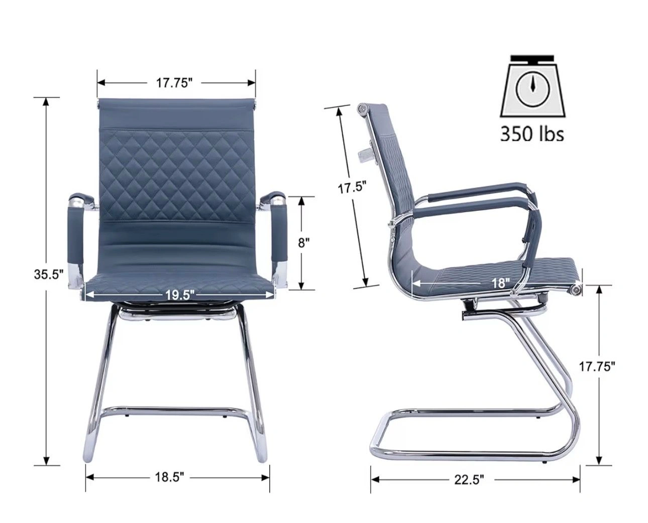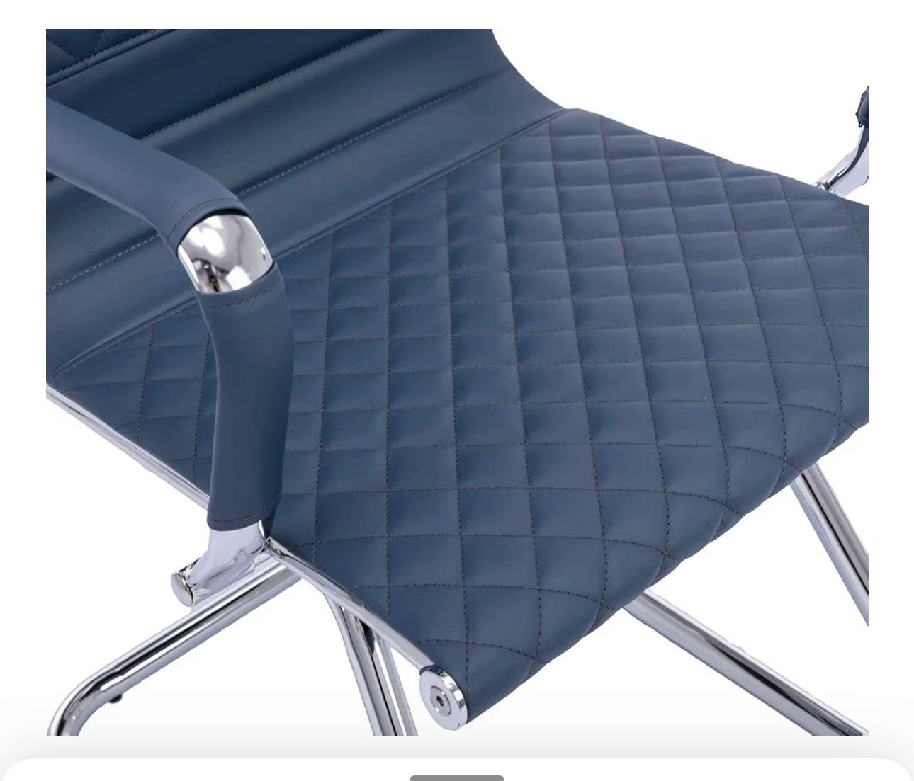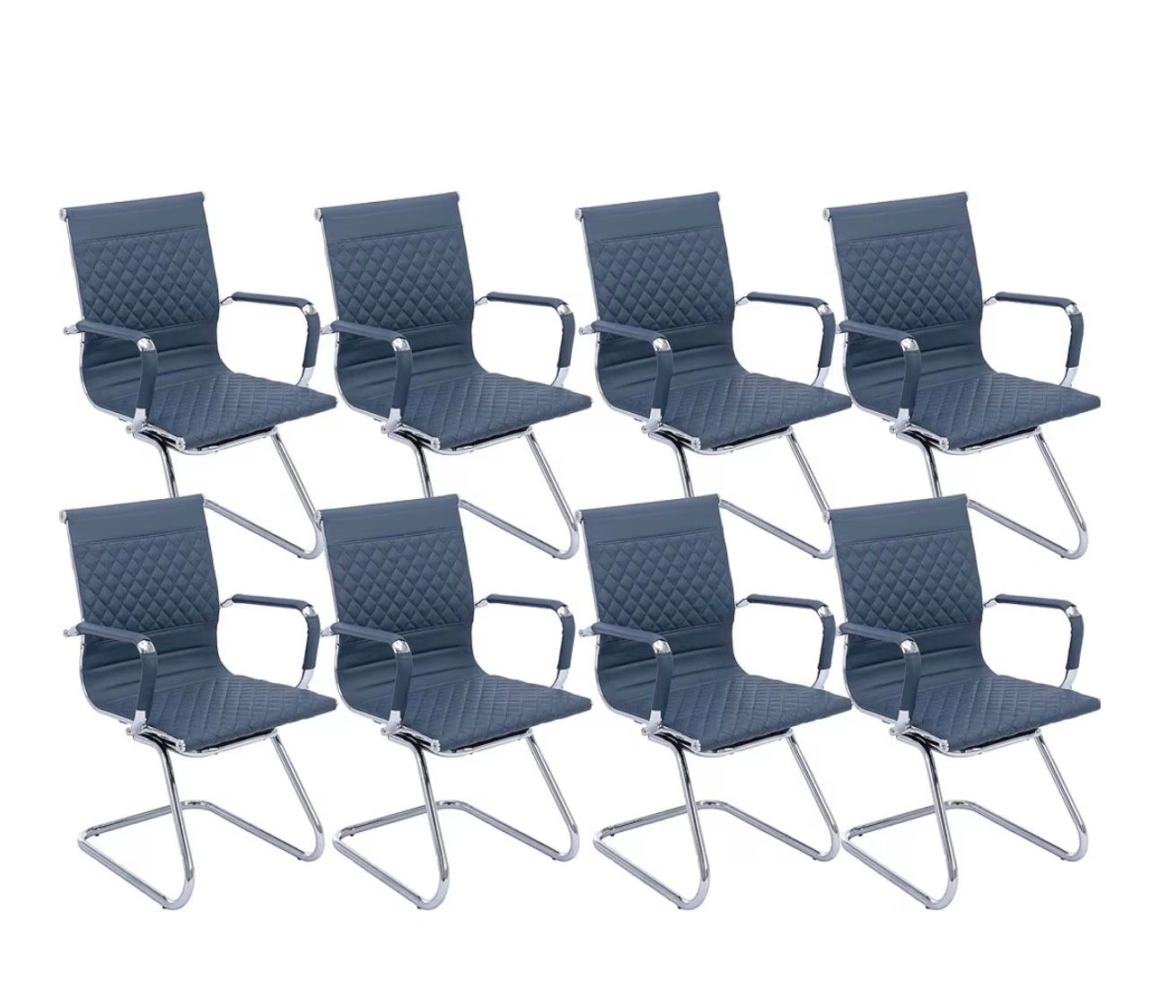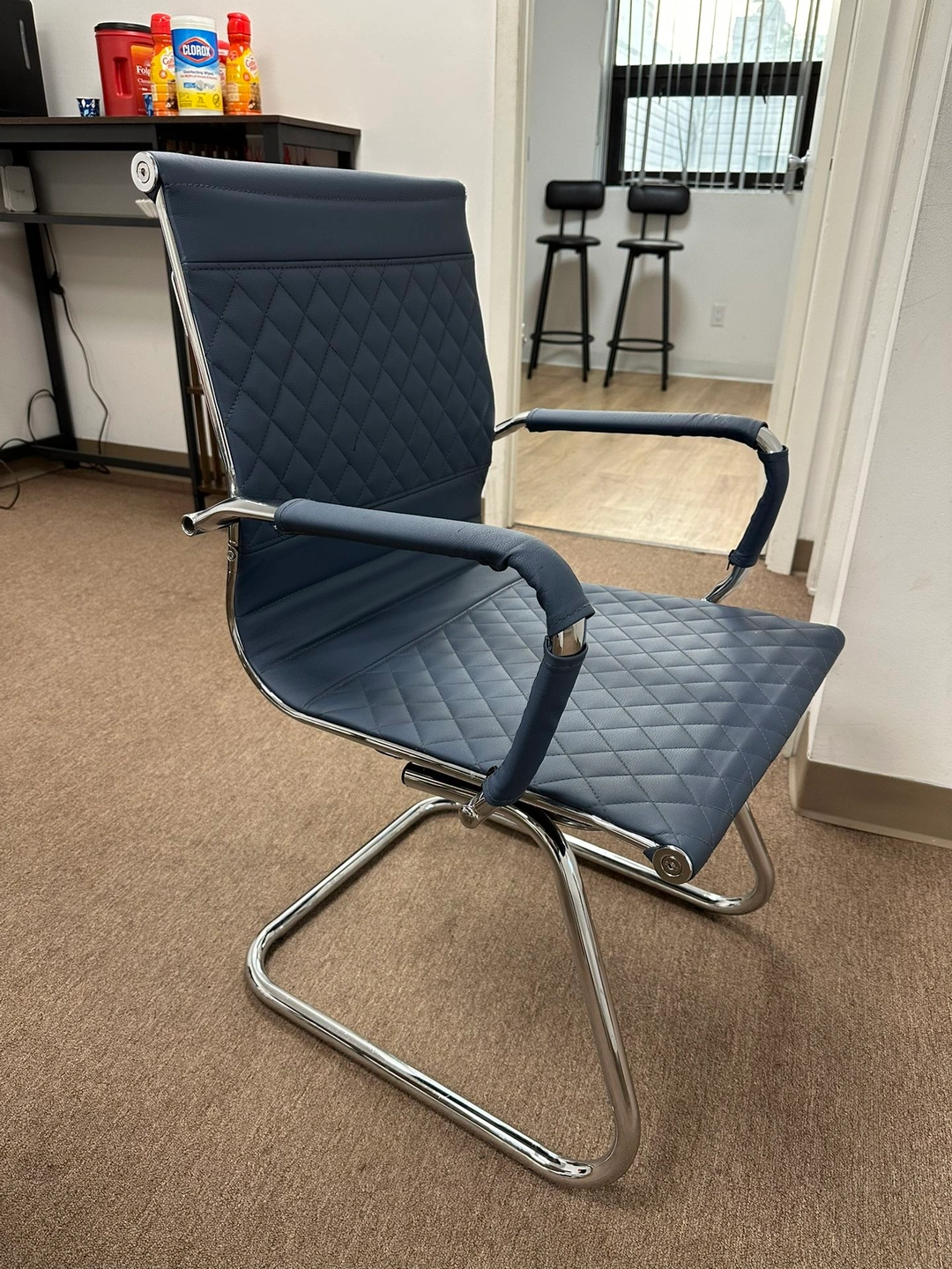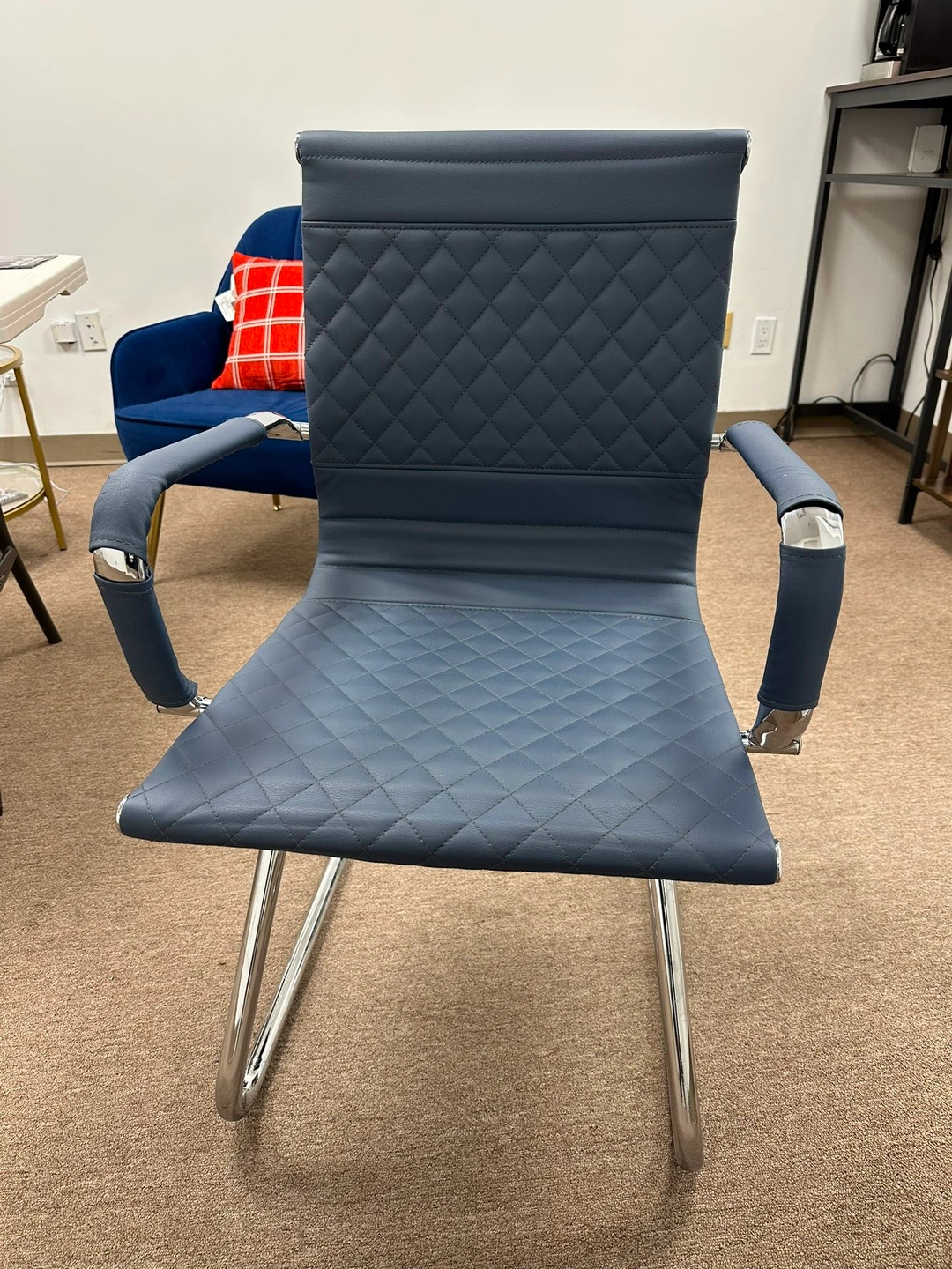 65Faux Leather Reception Chairs with Arms for Meeting/Waiting/Conference Room with Chrome Metal Sled Base, Set of 8, Navy Blue Material: cuero sintético de alta calidad • Color: azul oscuro con costuras decorativas • Base metálica cromada estable y resistente • Muy cómoda y fácil de limpiar • En excelente estado, casi nueva