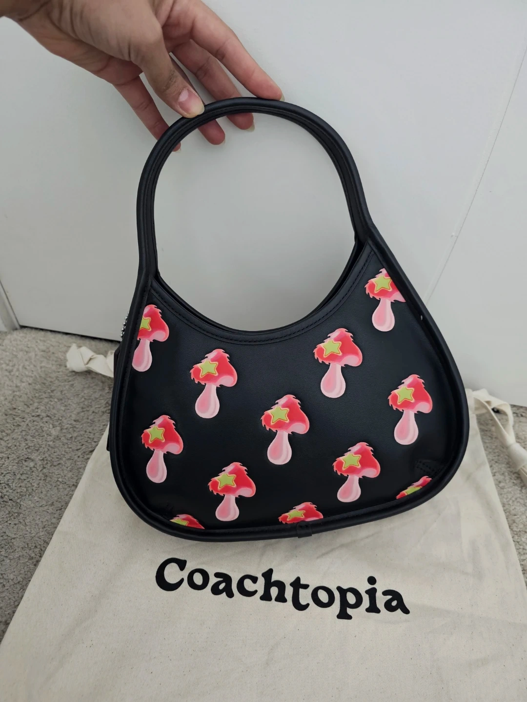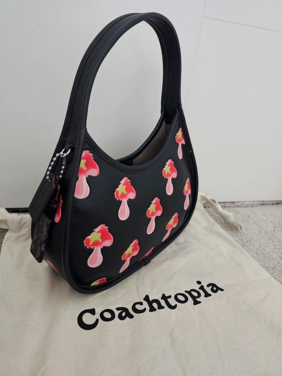 Super cute Coach Coachtopia Ergo bag with a fun mushroom print! It's in great condition and ready for a new owner. Comes with the original dust bag.