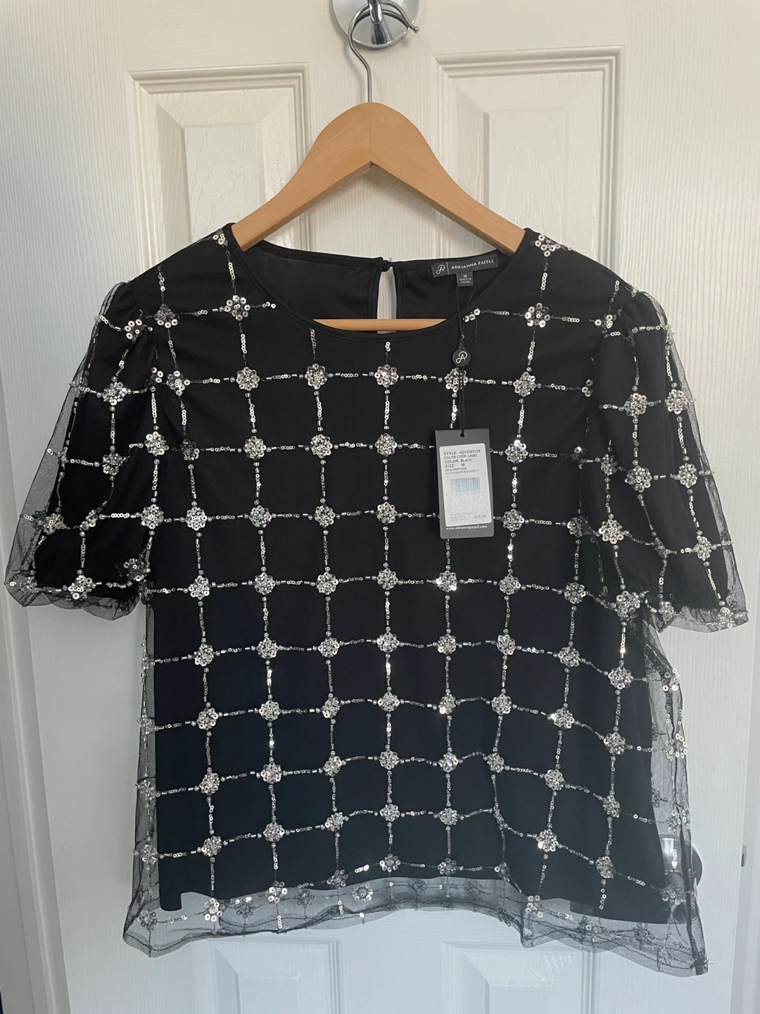 This Adrianna Papell top is brand new with tags! It's a beautiful black colour with sequin bead detailing. The size is M. A stylish