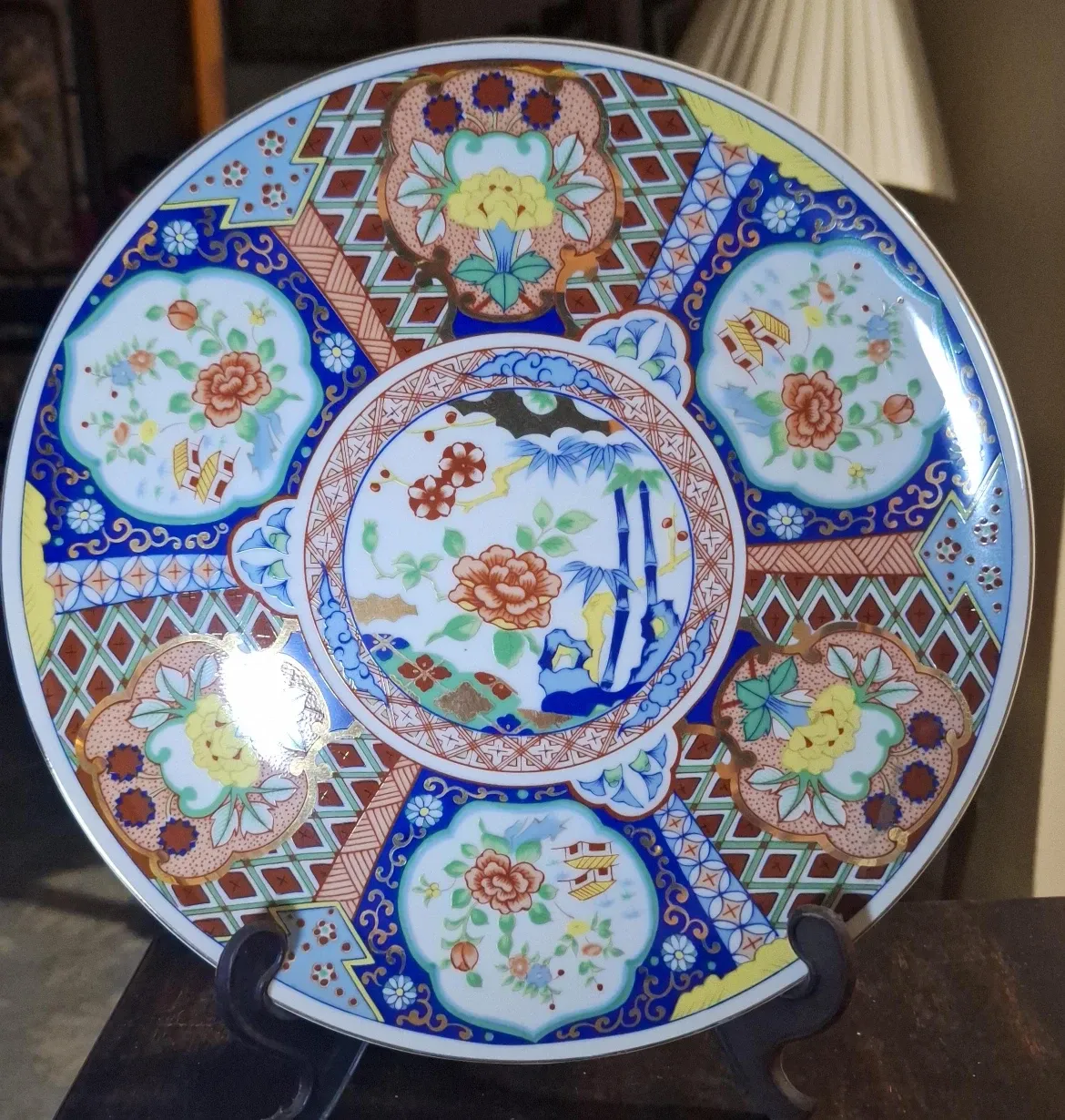 Beautiful vintage decorative plate with intricate floral and geometric patterns. Perfect for display or adding a touch of elegance to your home decor