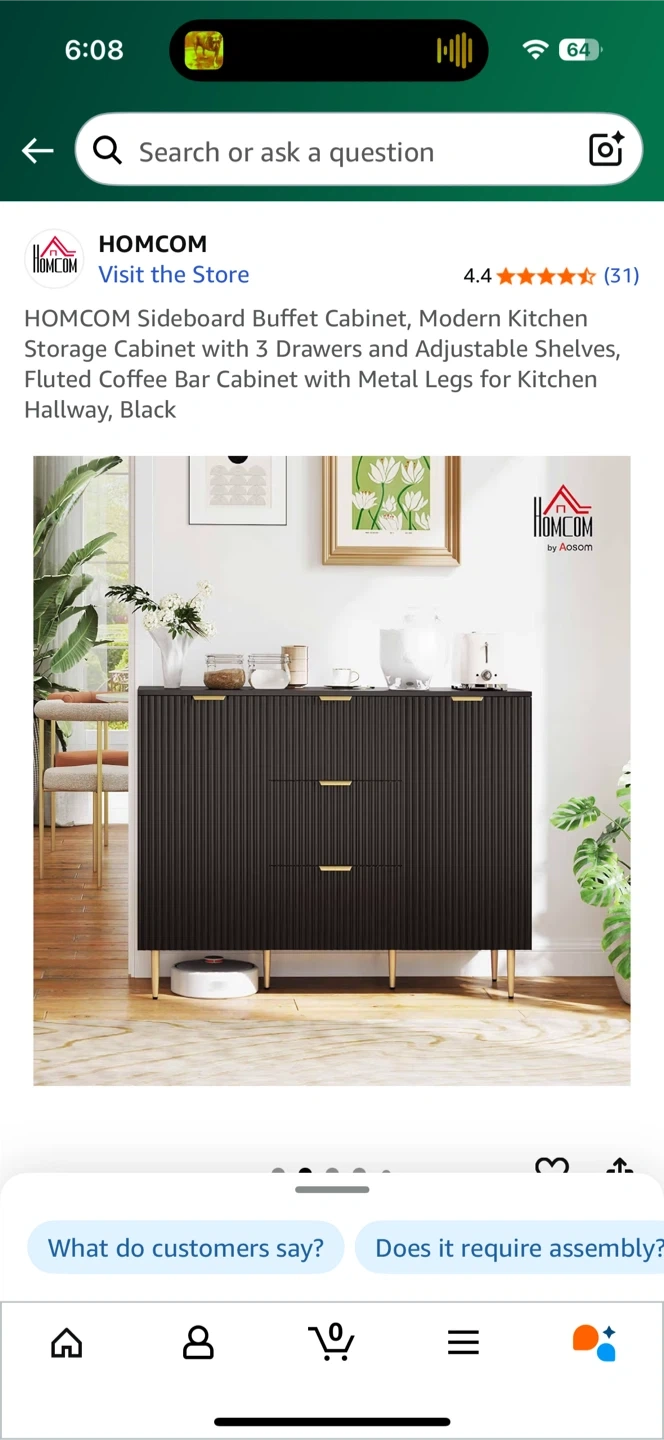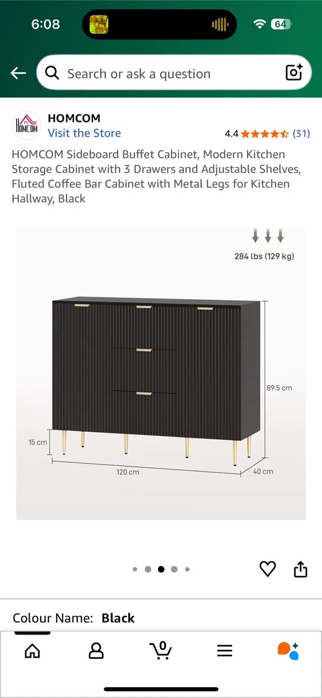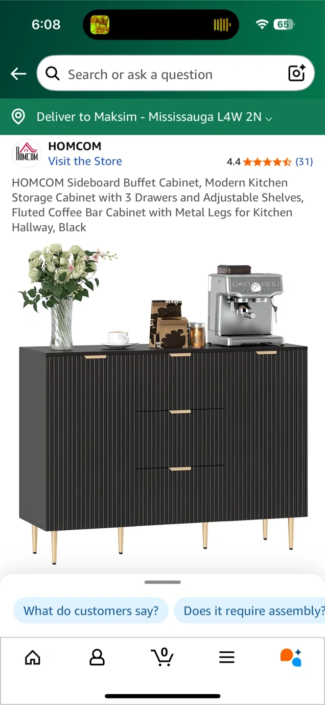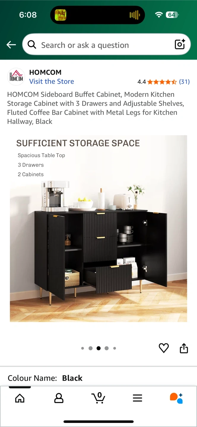 This HOMCOM sideboard buffet cabinet is perfect for a modern kitchen or hallway! It features a sleek black design with fluted details and metal legs.
