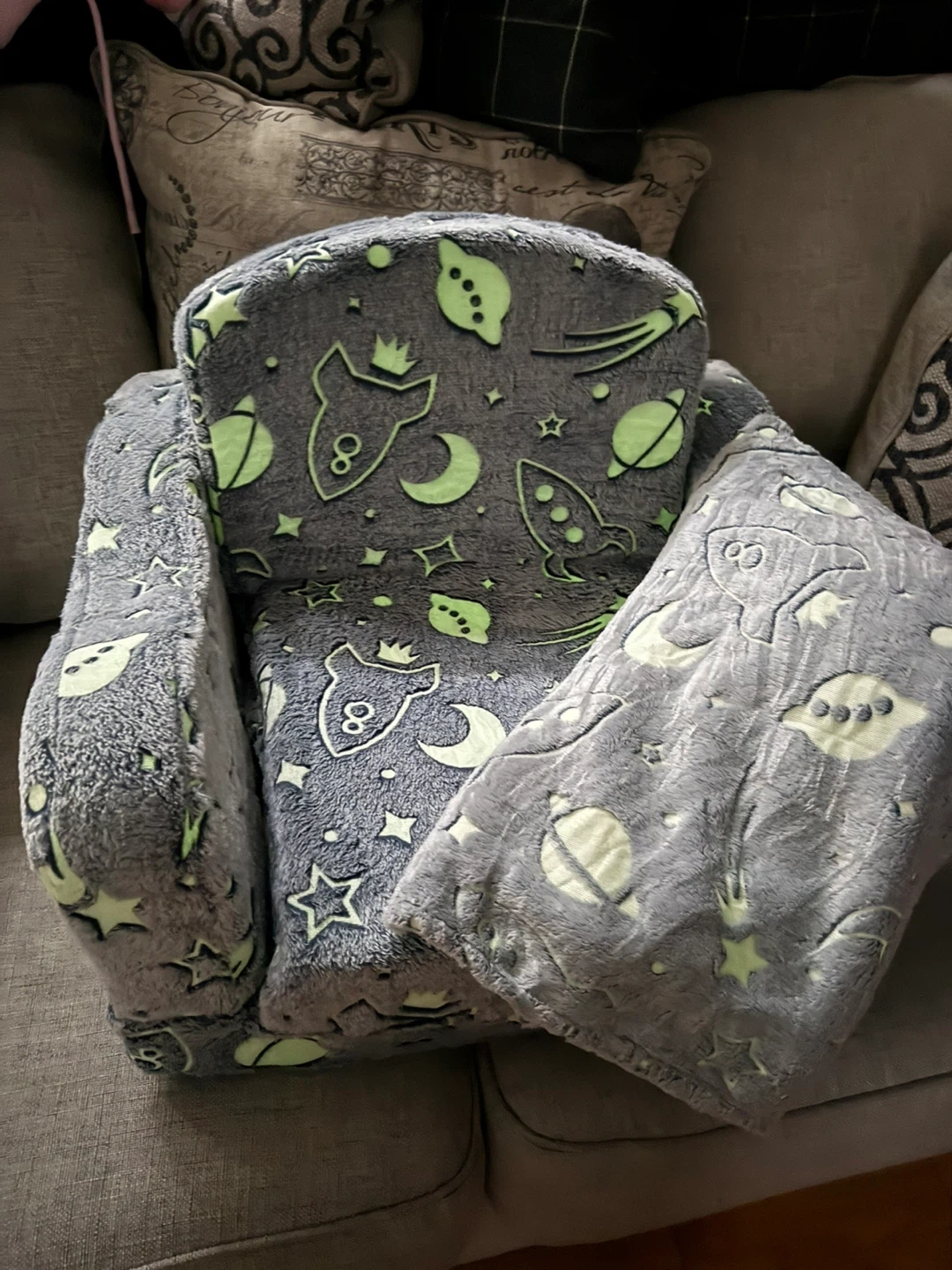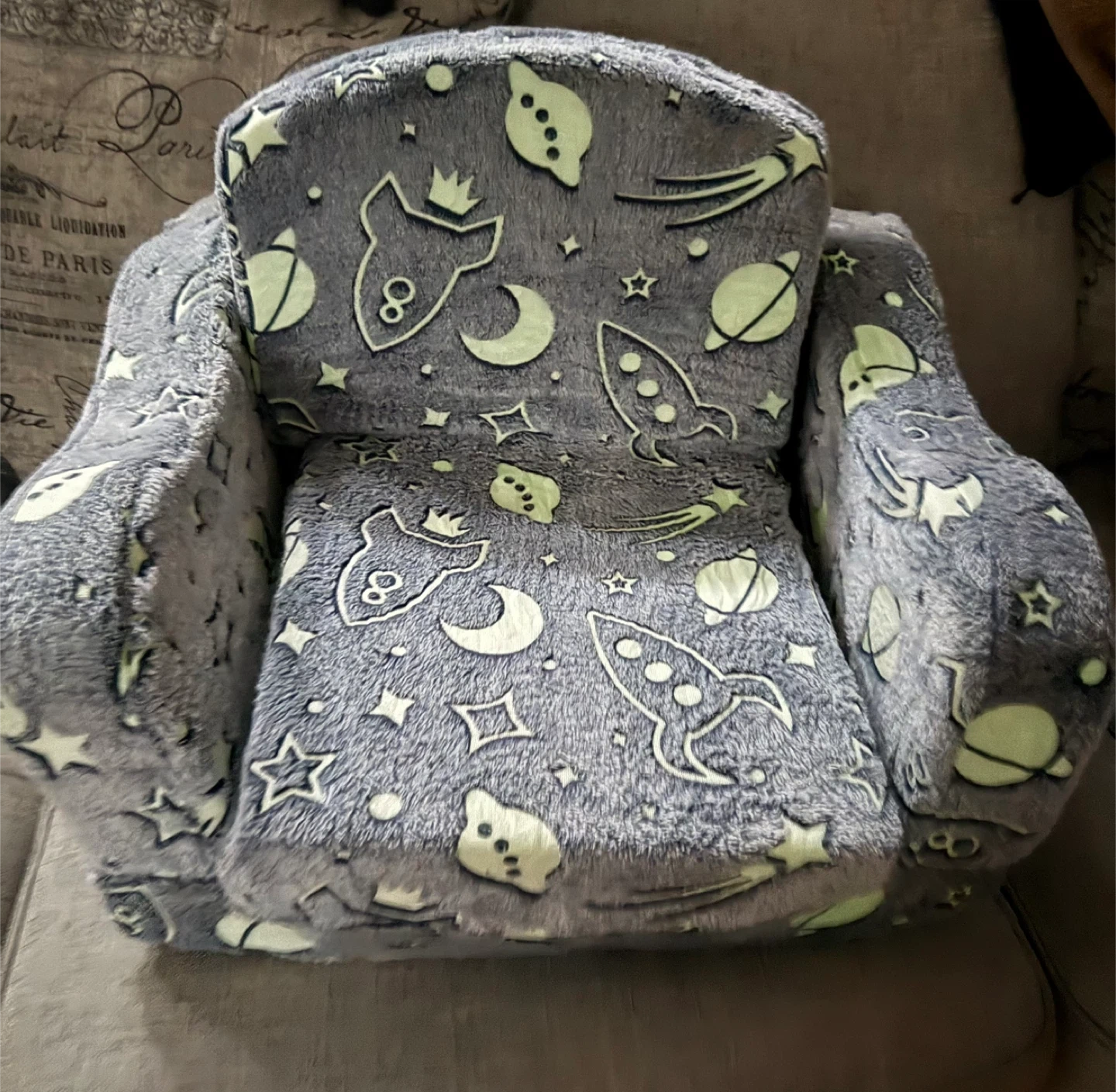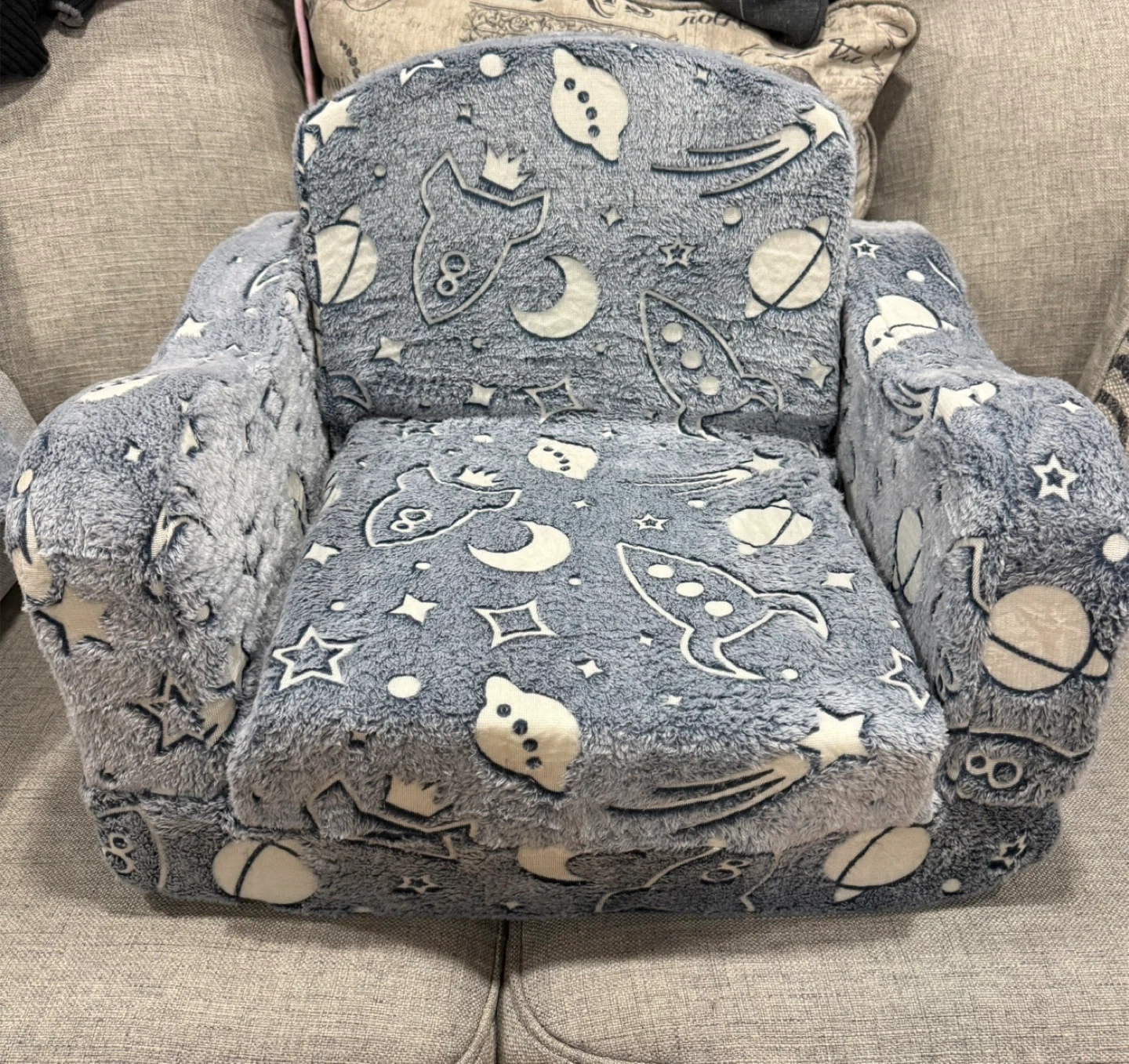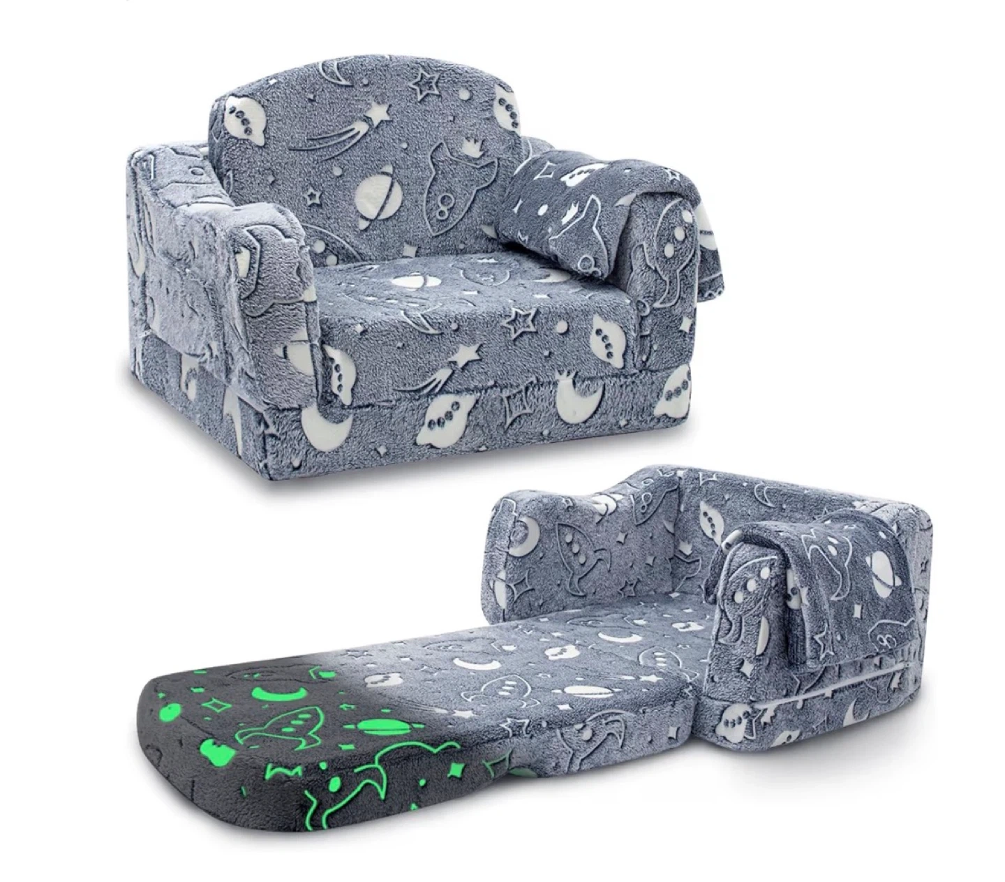 Kids Fluffy Glow-in-the-Dark Space Couch Chair