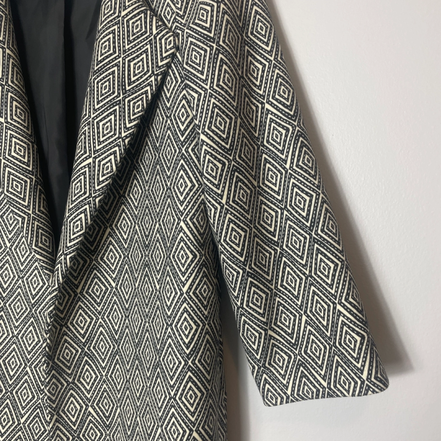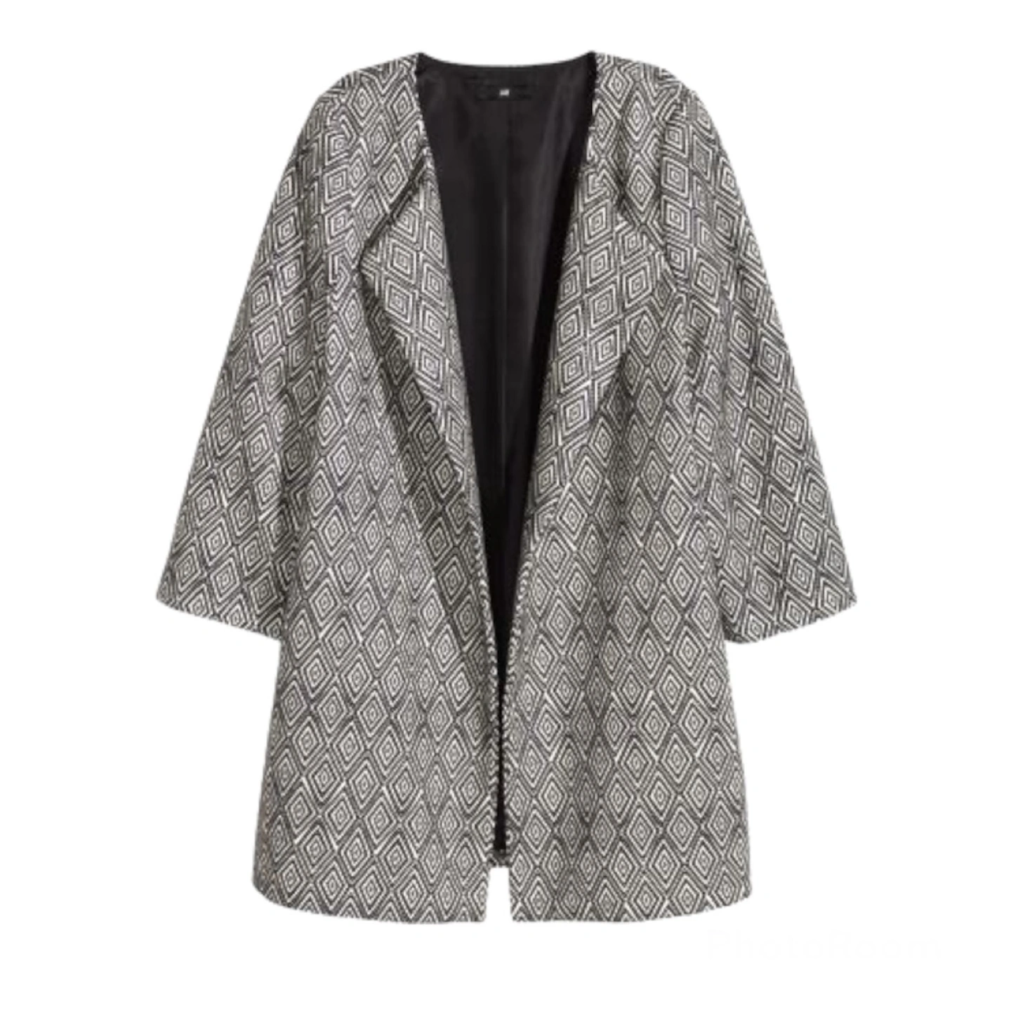Short coat in patterned felted fabric with 3/4-length sleeves, pockets in the side seams and no buttons. Lined.