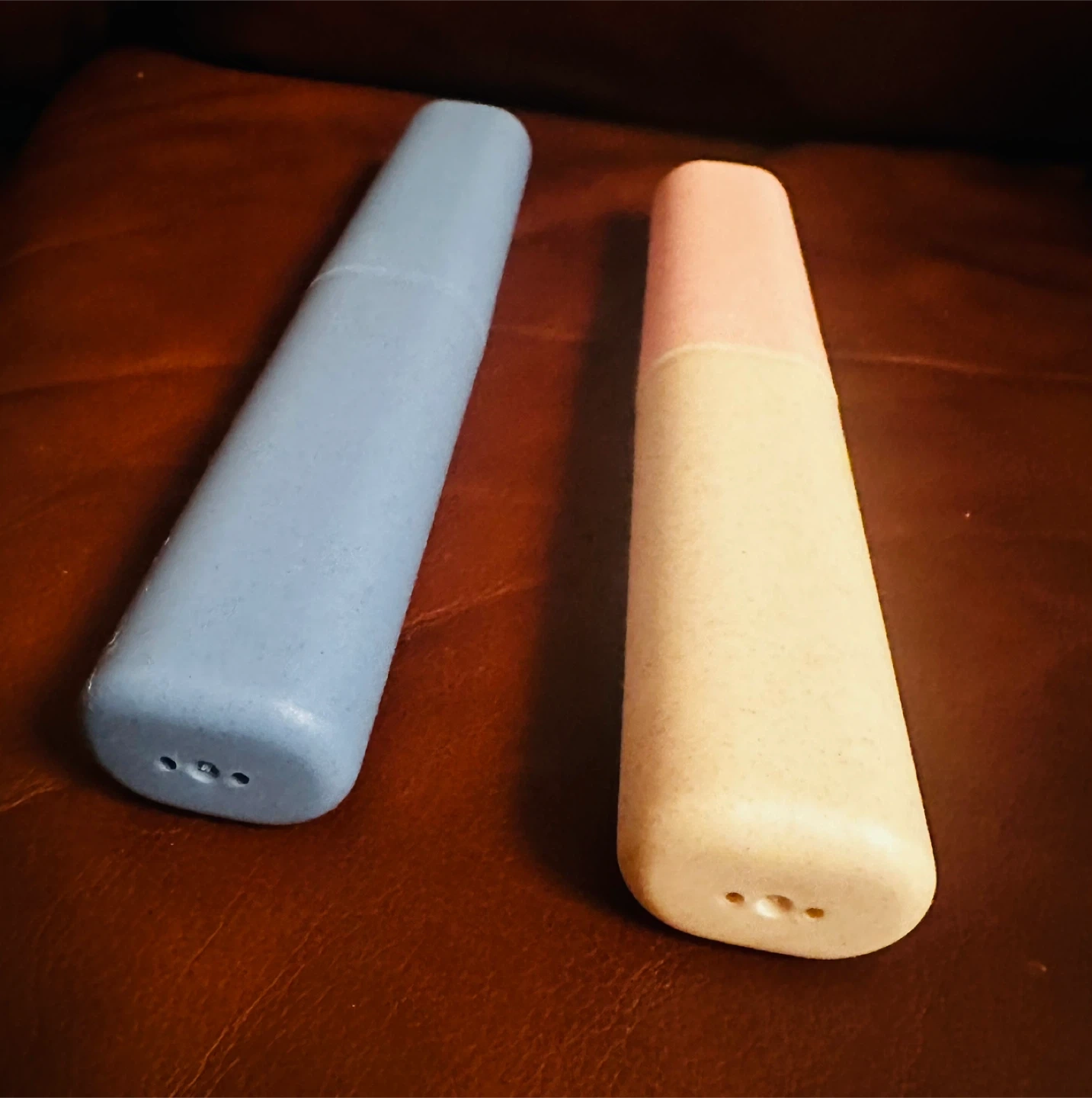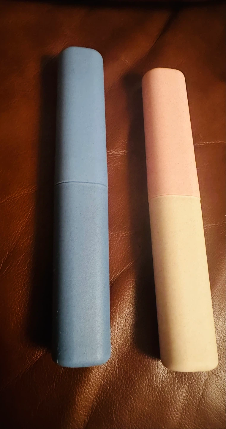 2 Travel Toothbrush Holders Cases - Blue and Pink