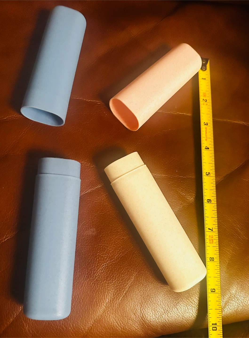 Comes with two toothbrush holders, one blue and one pink. These cases are perfect for travel. Each holder has ventilation holes at the bottom.