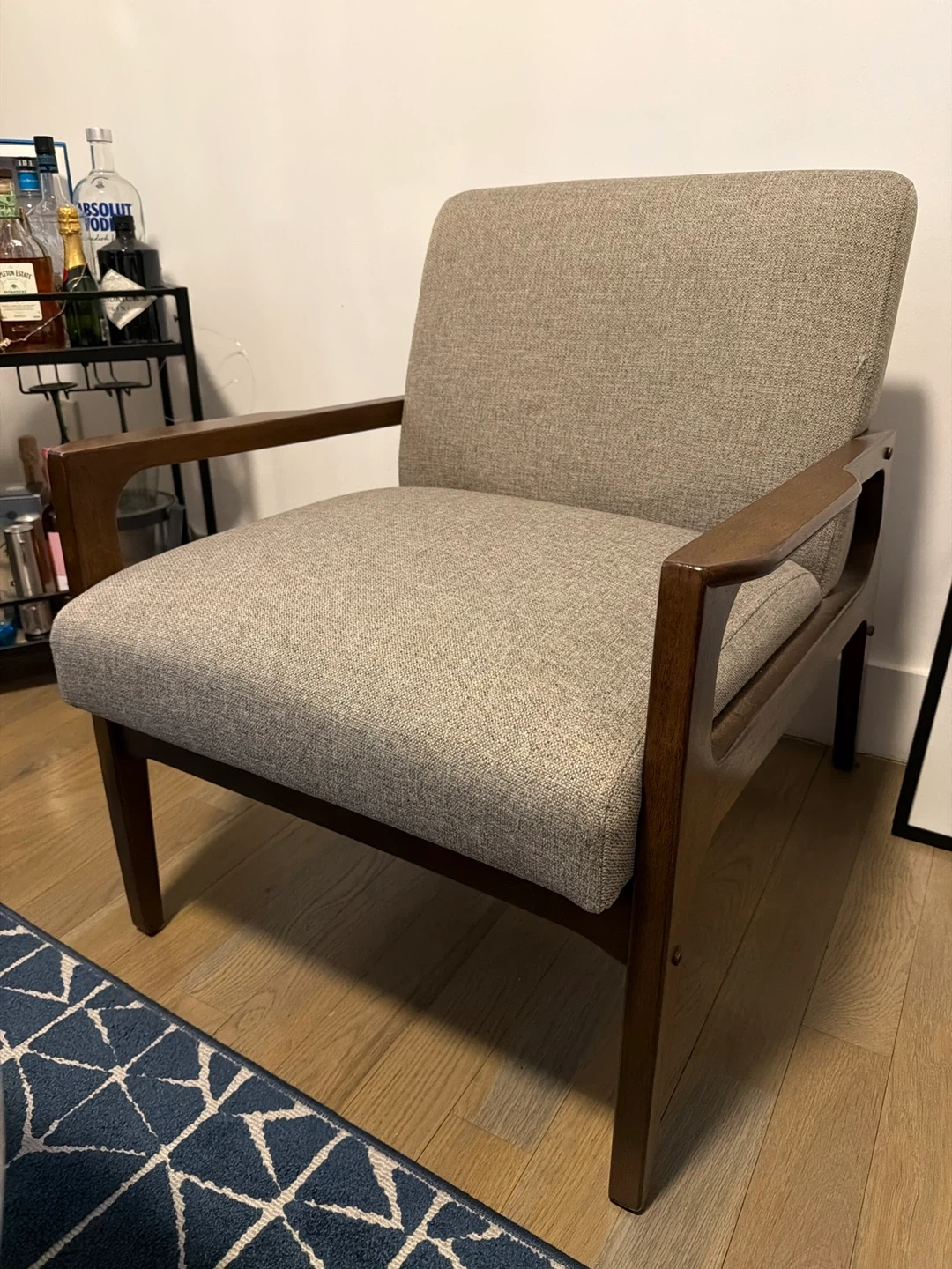 Mid-Century Accent Armchair - Gray Fabric & Wood Frame