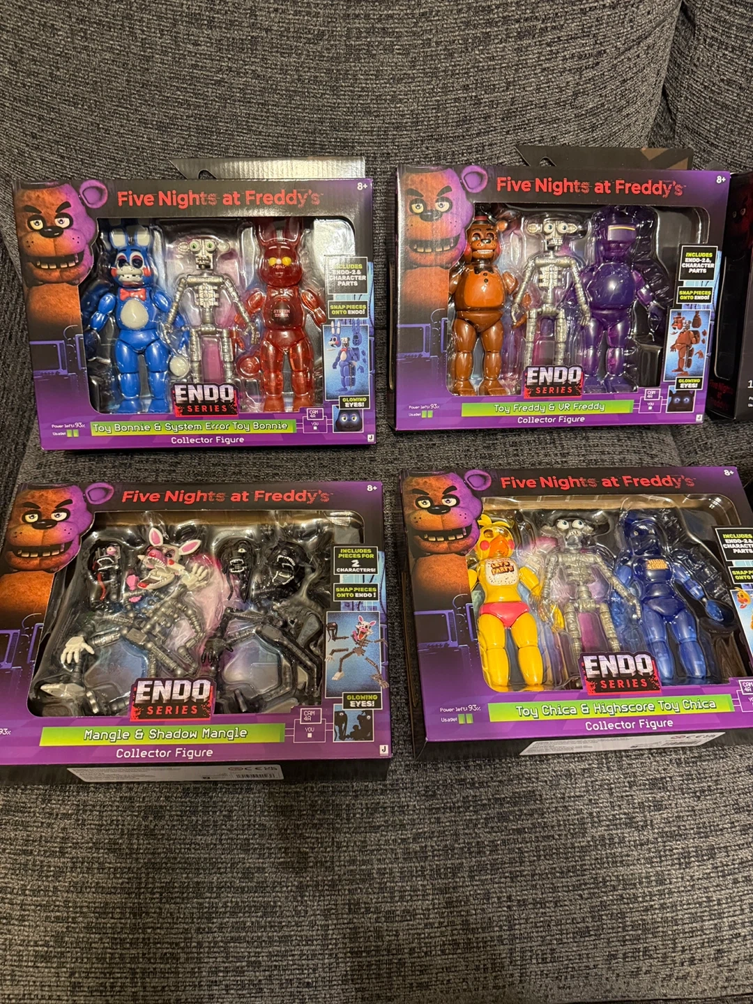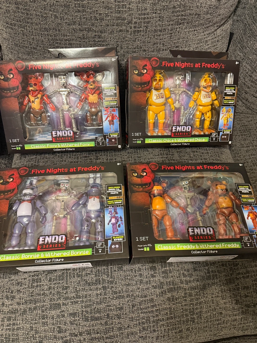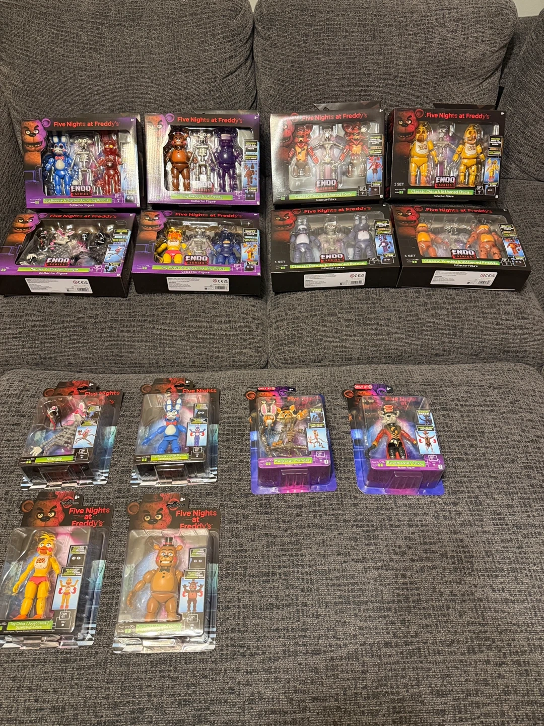 Collect these Five Nights at Freddy's action figures. Each figure is from the Endo Series and comes in collector packaging. Figures include Mangle, Ringmaster Foxy, Classic Foxy, Classic Chica, Classic Bonnie, Withered Freddy, and more. Recommended for ages 8+.