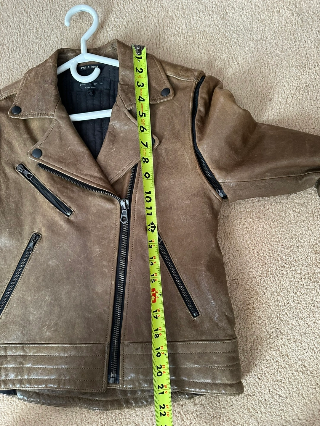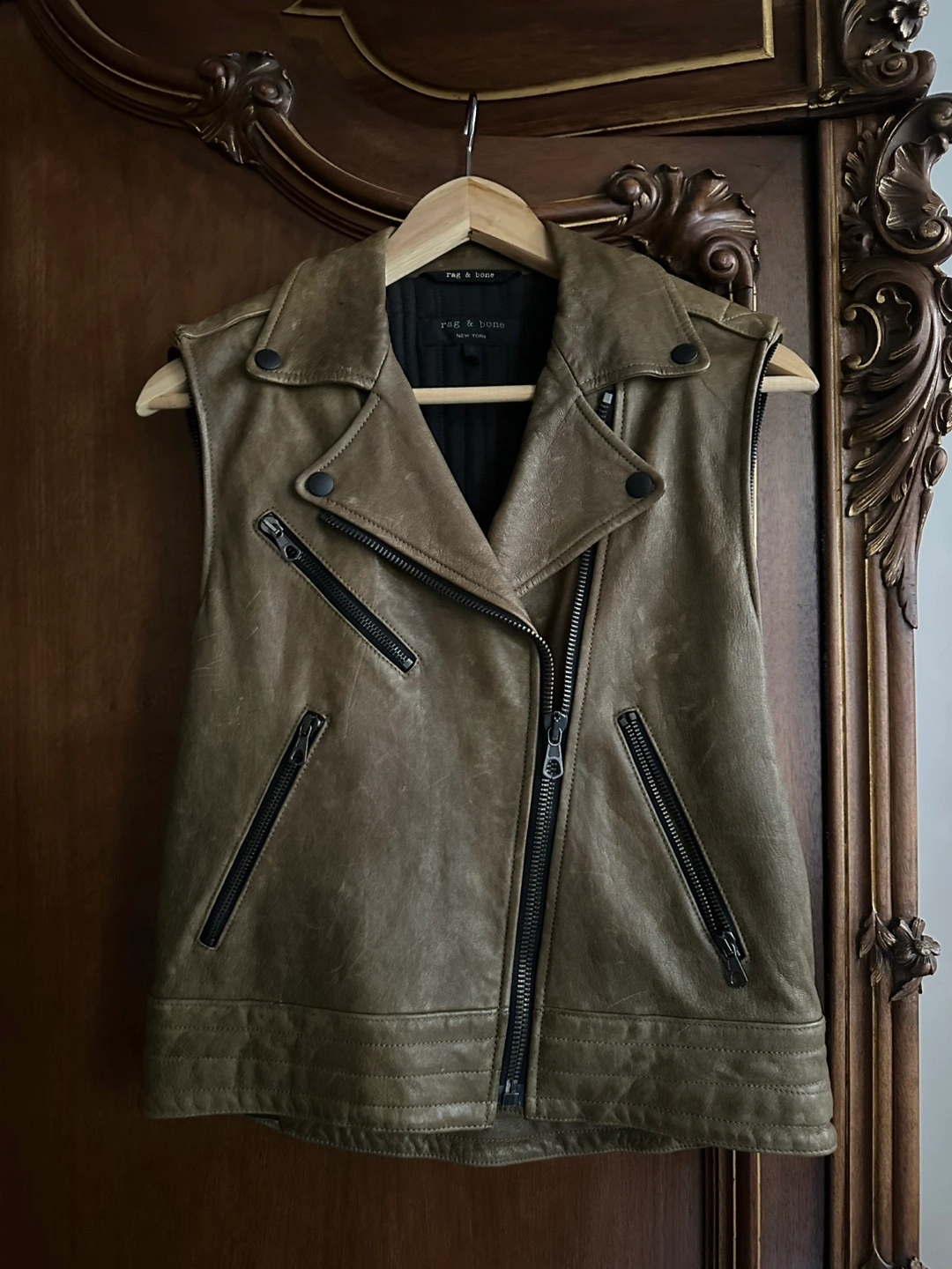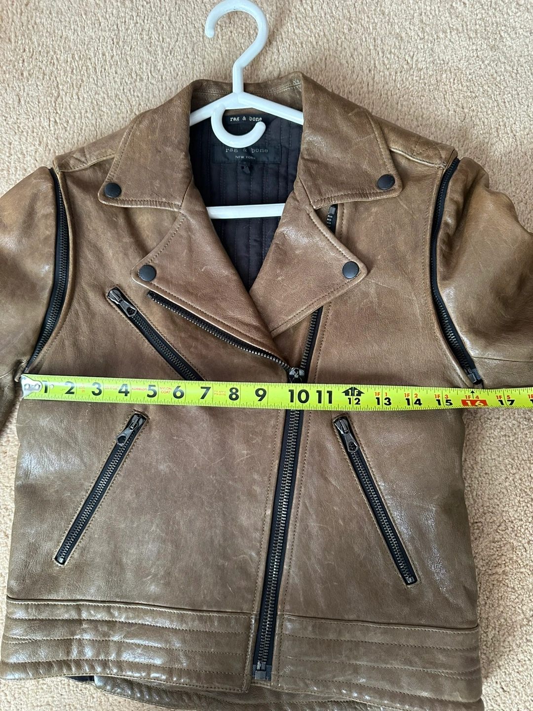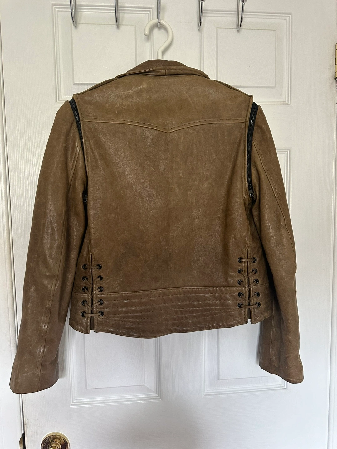 Rag & Bone Distressed Brown Lamb Leather Biker Jacket Turns into a Vest Size 2
