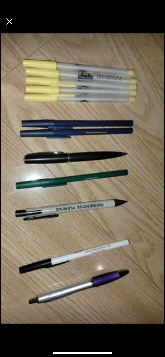 Brand new blue and black pens available for sale! get 3 pens for only 1 dollars, 7 pens for 2 dollars, or take advantage of our bulk offer and get all pens for just 4 dollars! That's a total of 16 brand new pens available for pickup ASAP. Check out our other listings for additional items!