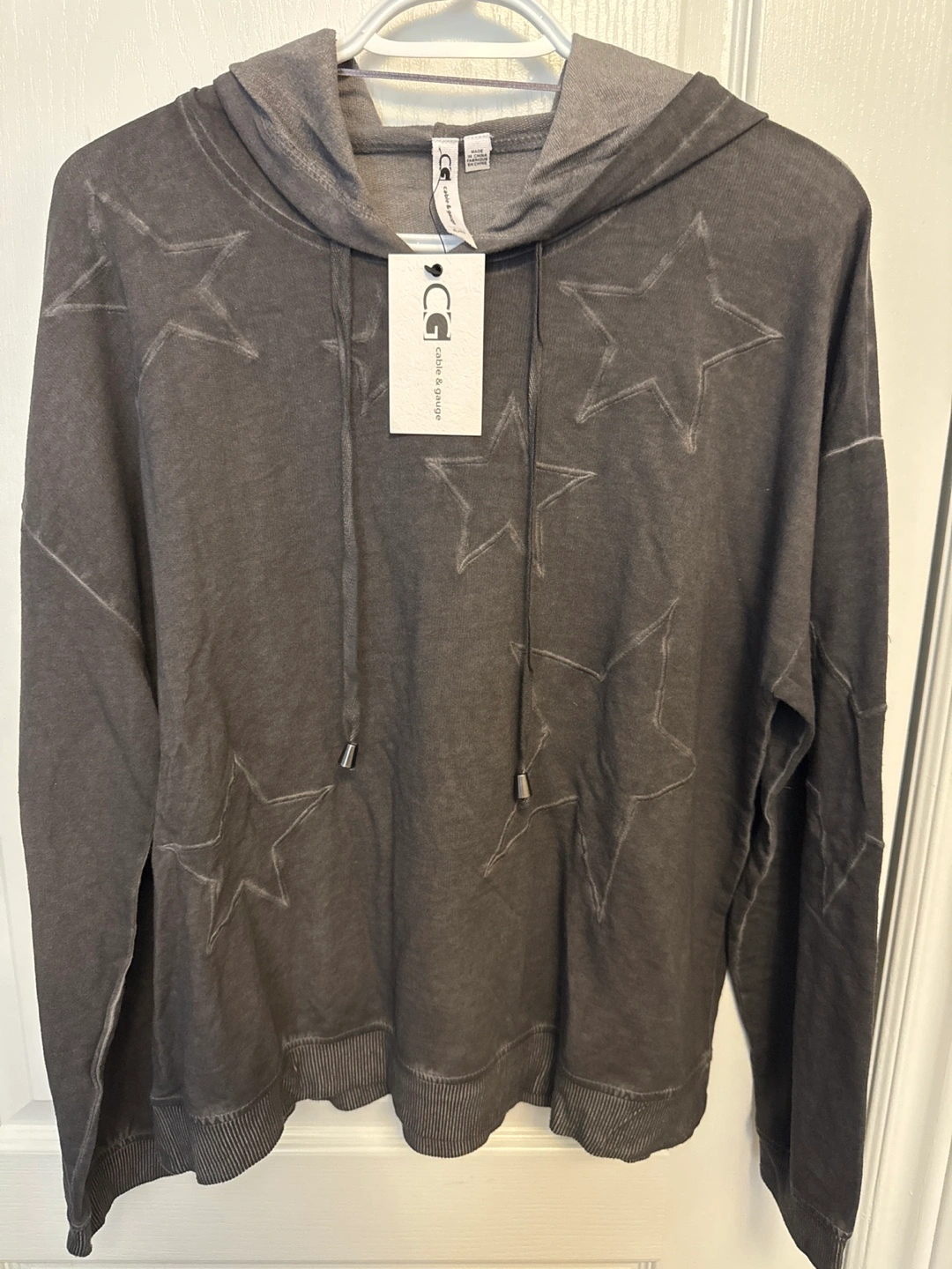 Grey hoodie with star designs.No stains or any markings, smoke free household.