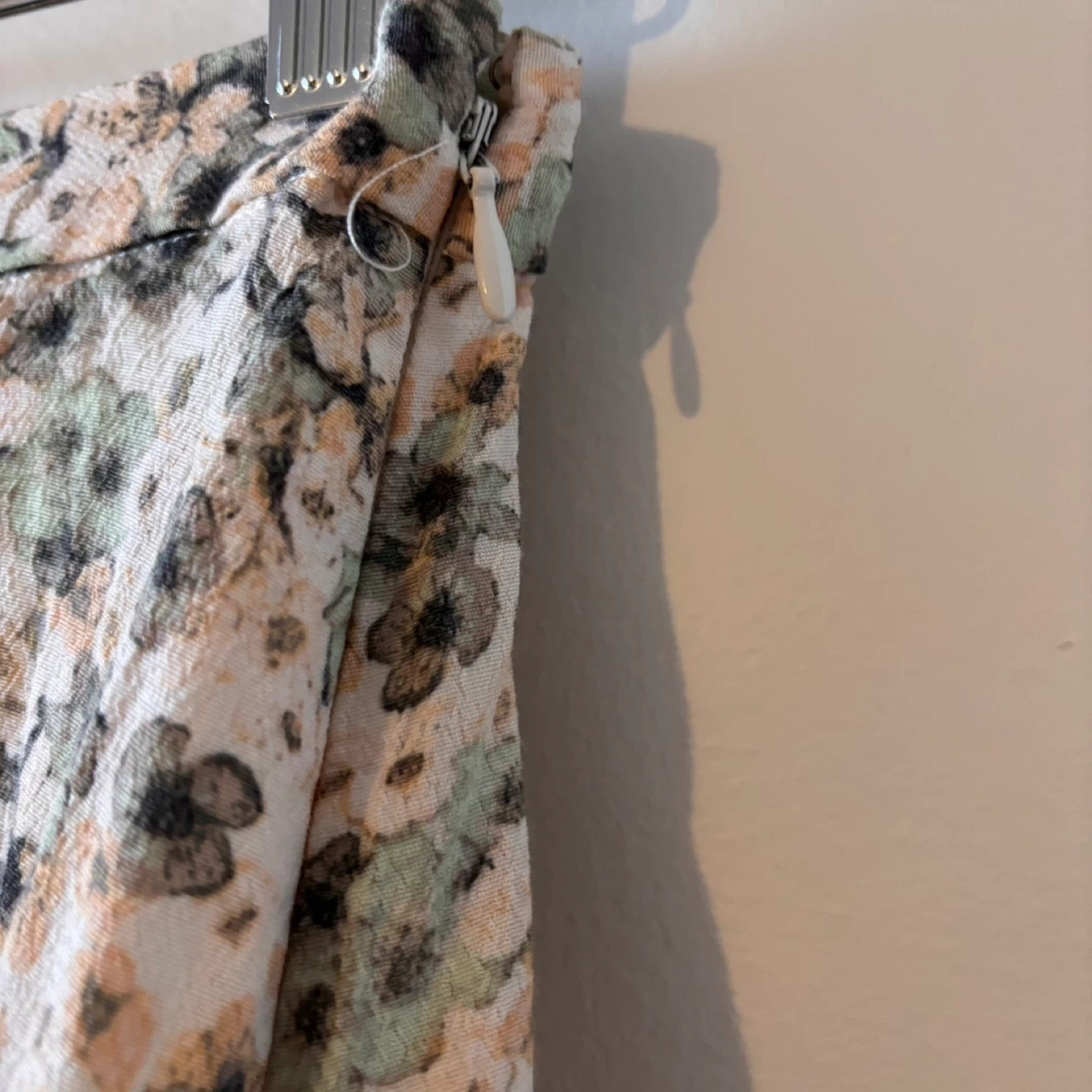 Lightweight floral print midi skirt. It features a high waist with a side zip closure. Includes a front slit detail for ease of movement.