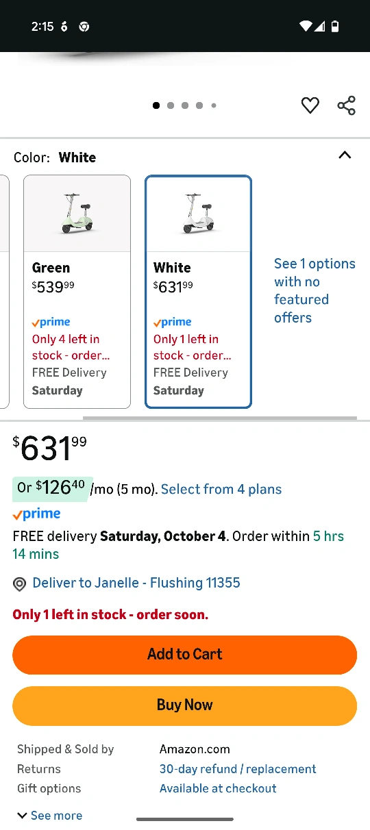 Selling an iVOOK electric scooter. It comes with a charger. Brand New! Practiced at home a few times but kept falling over. Comes with keys and a charger. Originally purchased at the price of ~$449.99. The box was thrown out. Also, I assembled the seat incorrectly. You will have to reassemble it! Other than that in perfect condition.