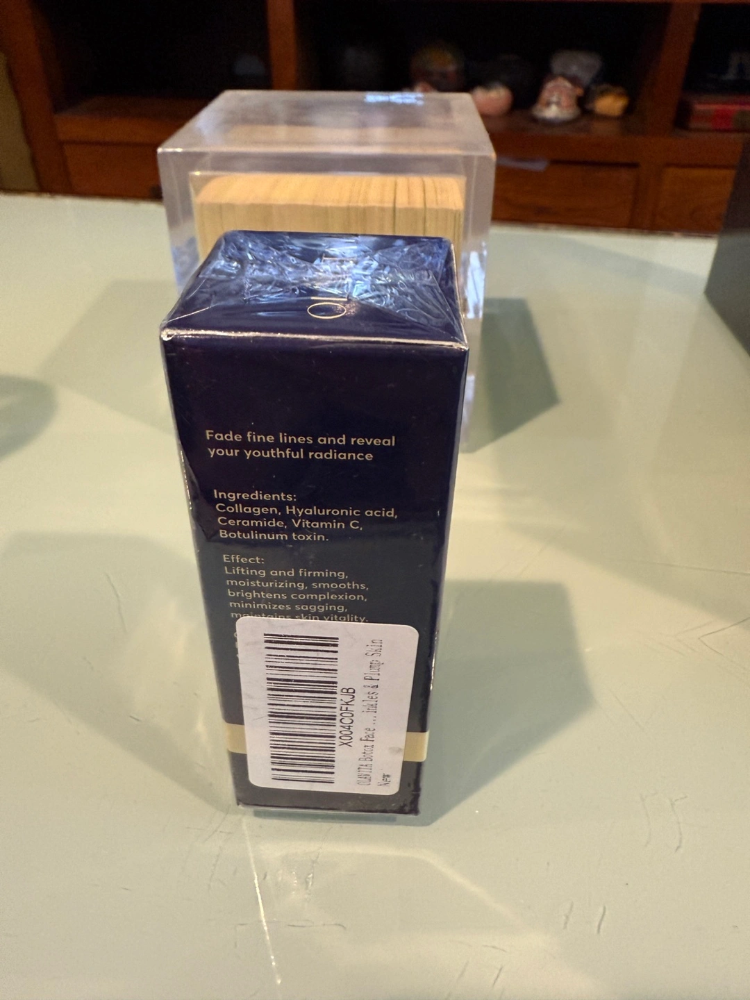 30ml / 1.01 fl oz anti-aging serum. Fades fine lines. Contains collagen, hyaluronic acid, botulinum, vitamin C. Lifting and firming. Brightens complexion. Minimizes sagging. New, unopened.
