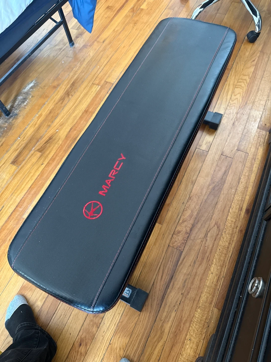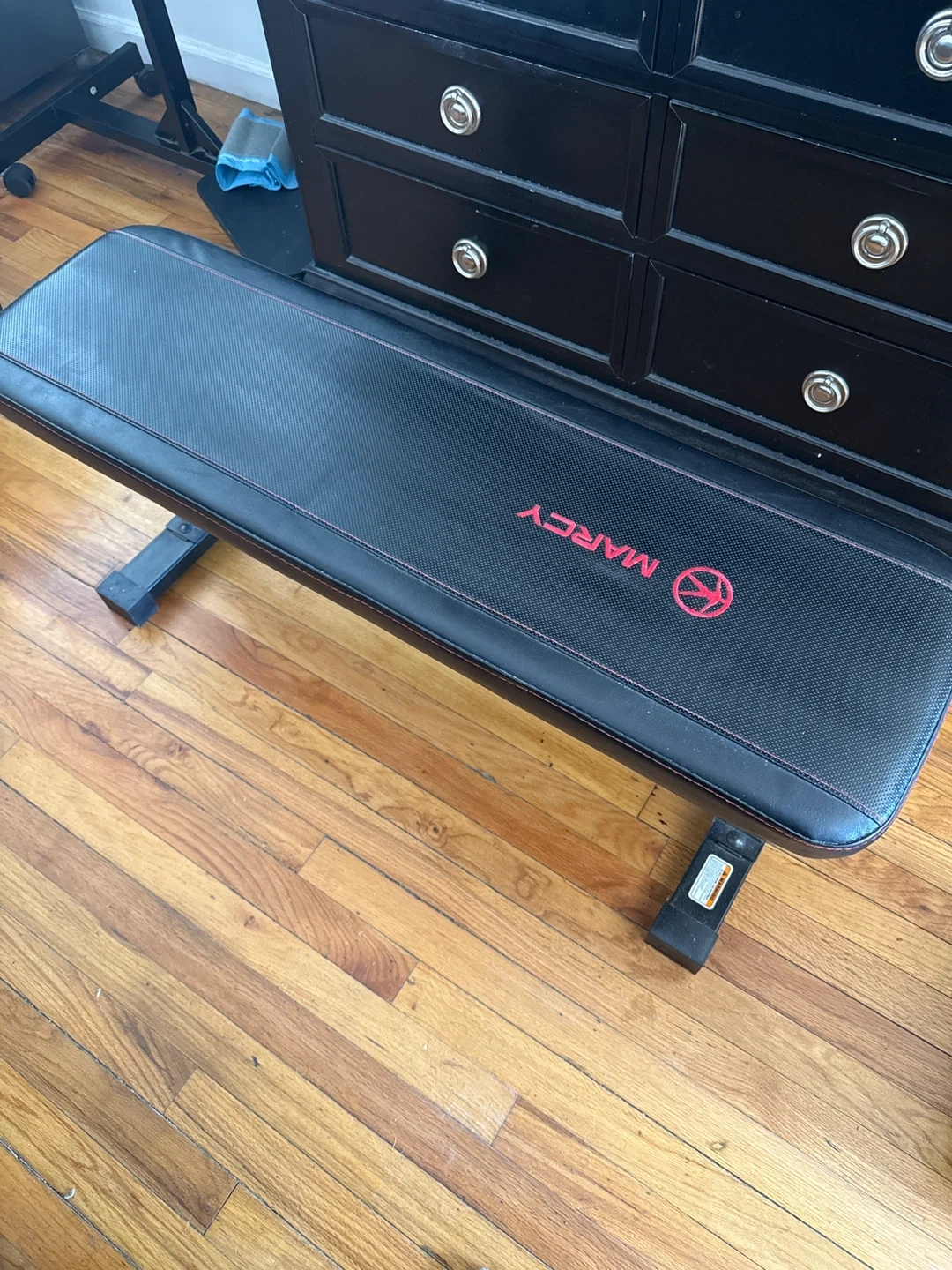Buy & SellMarcy Flat Weight BenchMarcy Flat Weight Bench$17This is a Marcy flat weight bench. It's made with a durable, textured black upholstery and red stitching. The bench has a sturdy metal frame for stability.ConditionGoodWHERE TO MEETCheck LocationView MapSELLERverifiedJosephBrighton Beach831 review0 chats·0 favorites·9 viewsSEND CHAT TO SELLERHi Joseph! I’m interested in your listing.Hi Joseph! I’m interested in your listing.Get the Karrot app to chatSign In to chat
