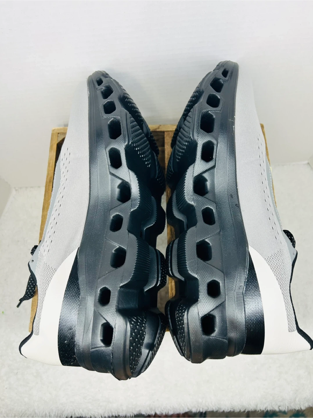 Selling a pair of On Cloudmonster running shoes in gray! These shoes are designed for maximum cushioning and energy return, making them perfect for long runs or everyday wear. They feature On's signature CloudTec® cushioning and a Speedboard® for a responsive and comfortable ride. The unique design of the sole provides excellent grip and durability. Great for running or just walking around town!