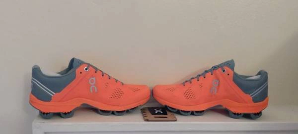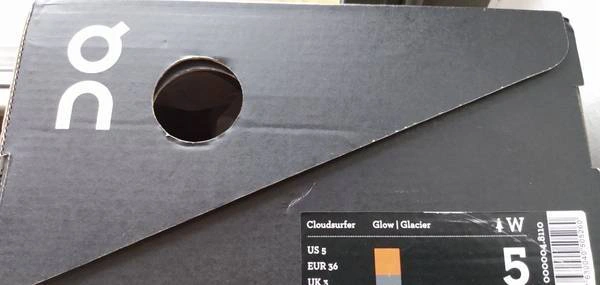 Selling a pair of On Cloudsurfer running shoes in the Glow Glacier colorway for women. They are a US size 5. Comes with the original box. Color: Glow/Glacier