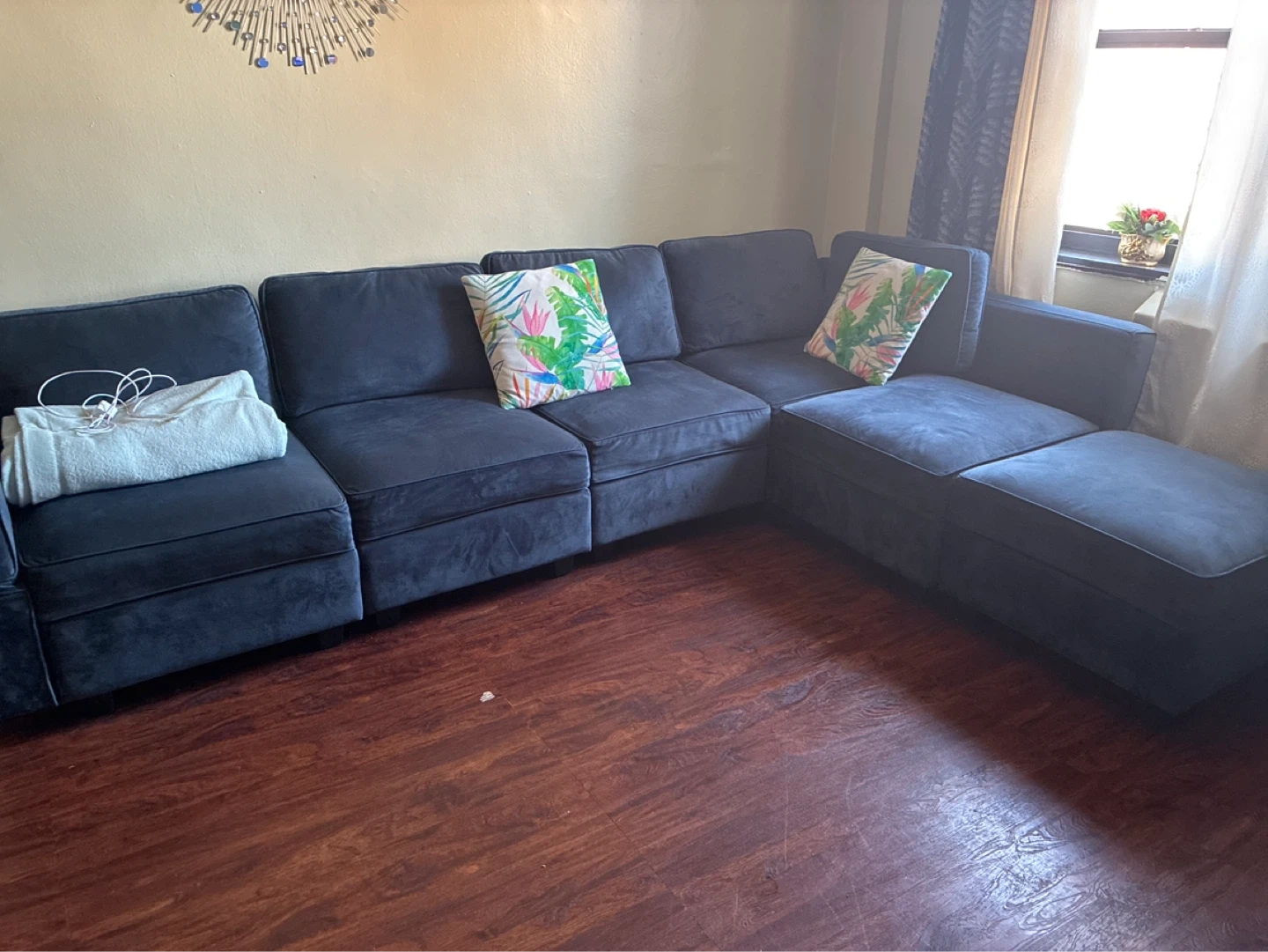 I had this for about a year I’m moving and need it gonna asap . There storage underneath all sofa chair . It’s very comfortable ,condition is fair . You can have it set up together or separately . Pick up location will be discussed privately .