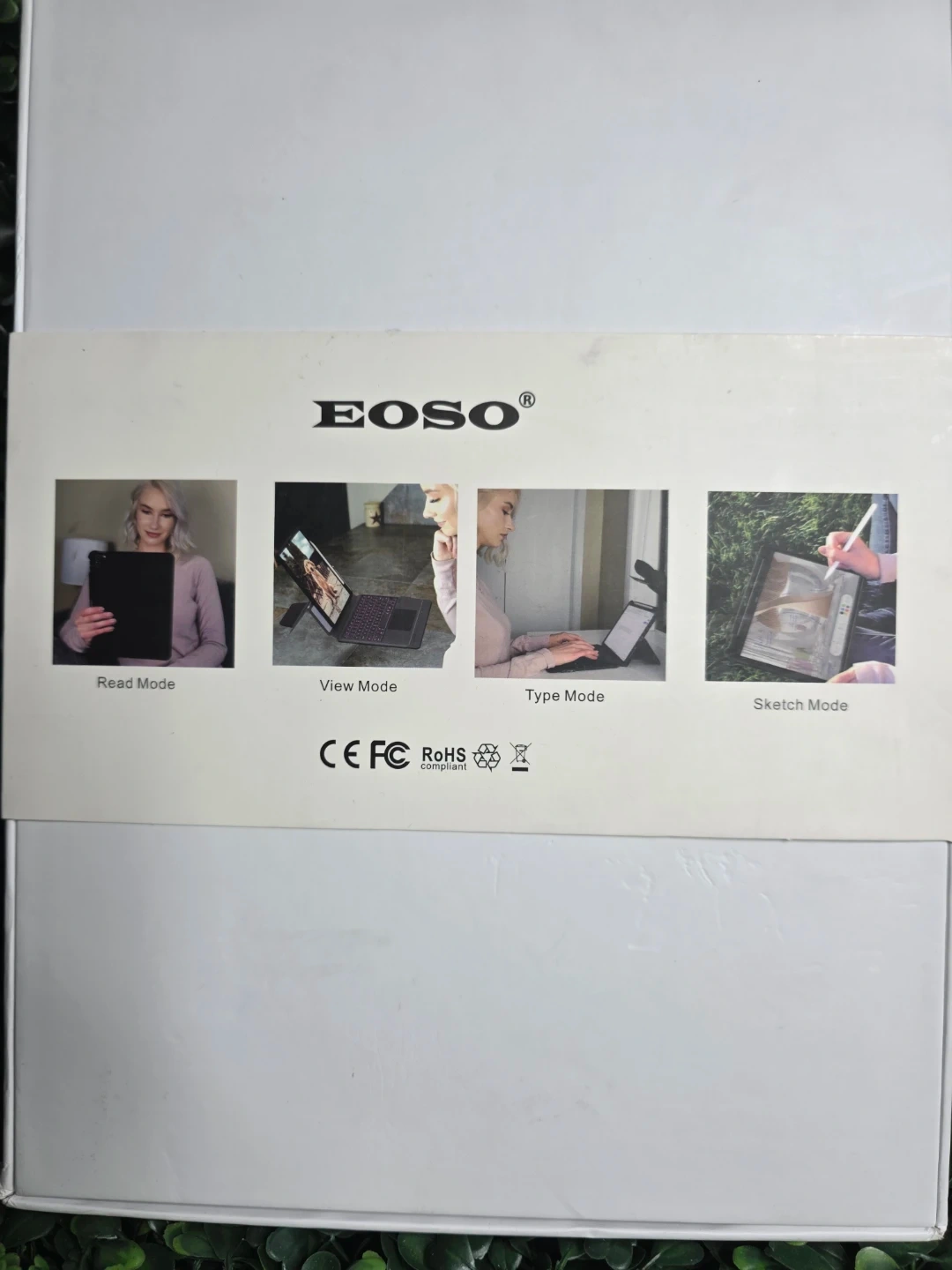 This EOSO V8 keyboard case is designed for various iPad models. It offers multiple viewing modes including read, view, type, and sketch. The case comes in black.