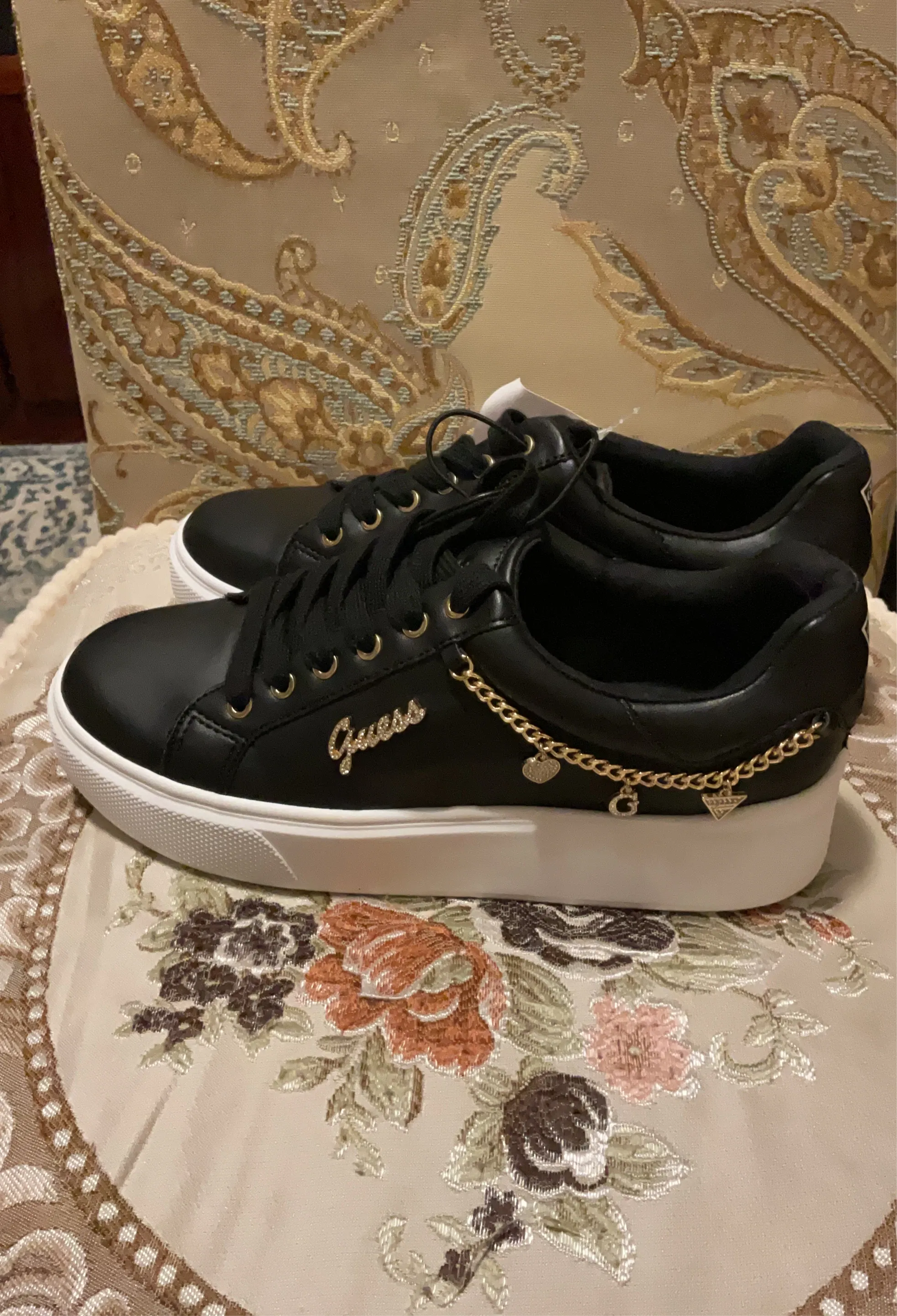 Guess Black Low-Top Sneakers with Gold Chain Detail